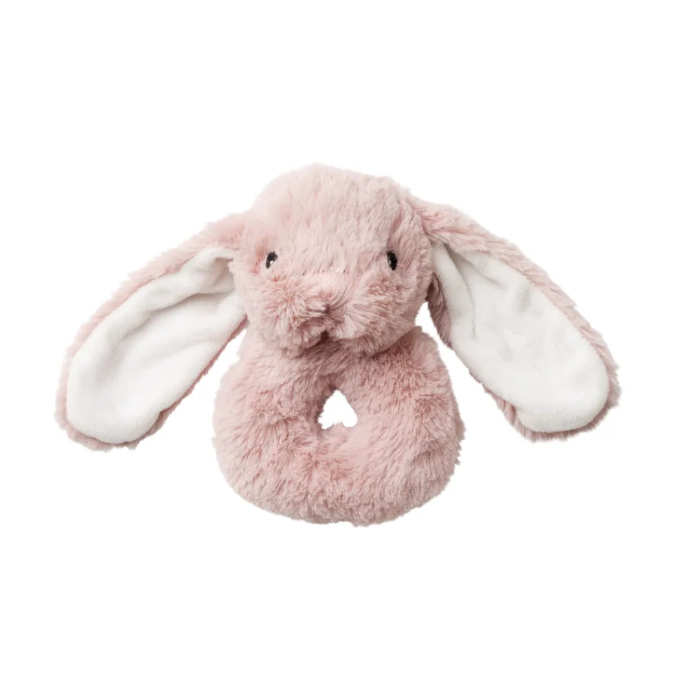 Sød rangle formet som en bamse, der kan bruges til selv de helt små børn. Ranglen har små klokker indeni, der giver en fin lyd og kan være med at stimulerer barnets sanser. Ranglen måler 15 cm.
