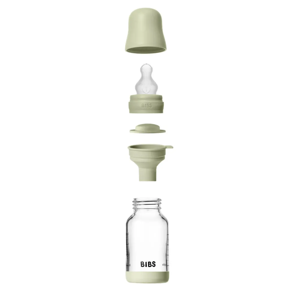 BIBS sutteflaske er omhyggeligt designet til både babyer og forældre. Flasken er lavet af borosilikatglas, som tåler høje temperaturer, er holdbart og frigiver ingen skadelige stoffer til mælken.