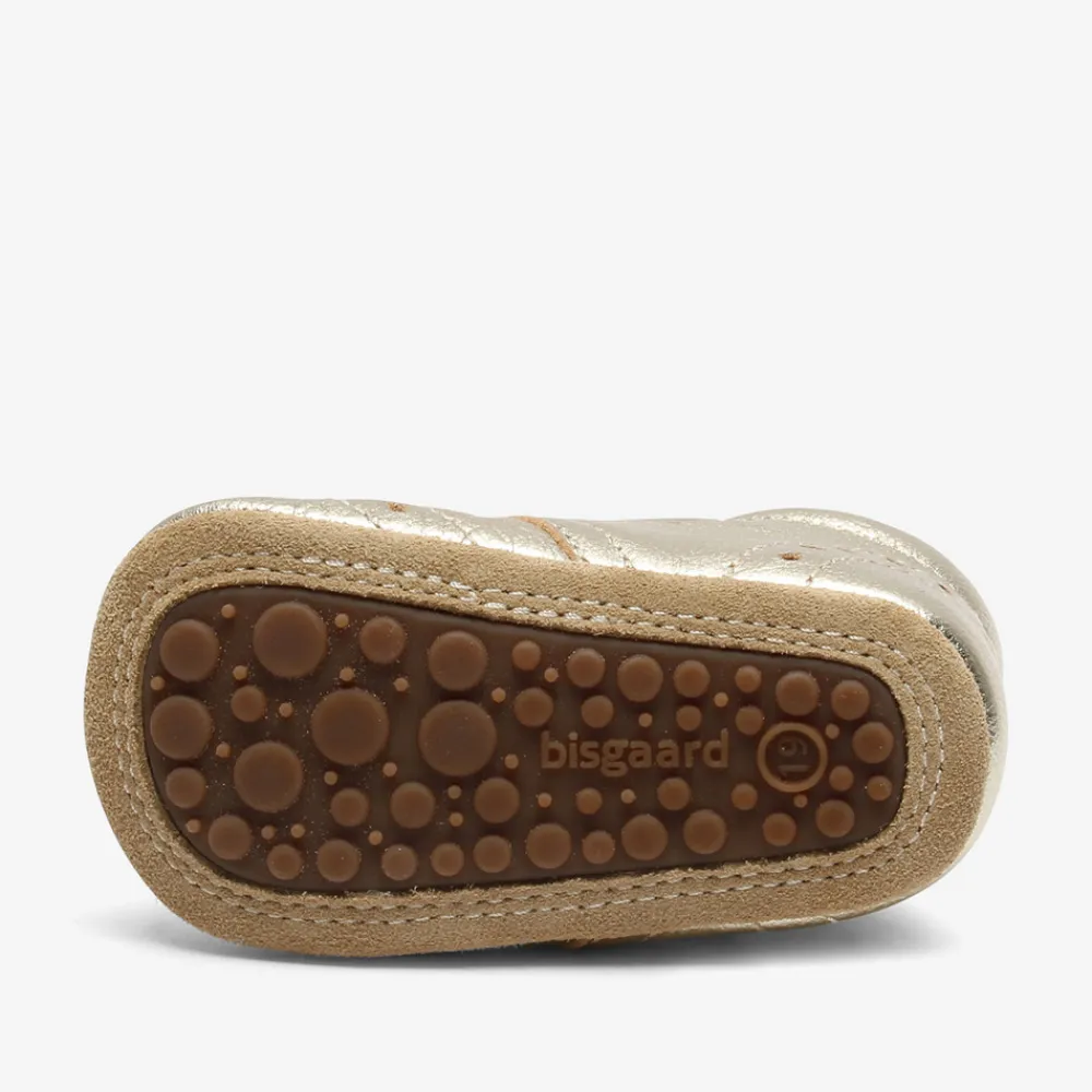 Hjemmesko, som også kan bruges som prewalker med velcrolukning, skindfoer og en blød sål af ruskind og skridsikker gummi, der giver den optimale støtte. Hjemmeskoen er produceret i 100% naturligt og åndbart læder, der er lukket rundt om foden og samtidig giver foden plads til at vokse.