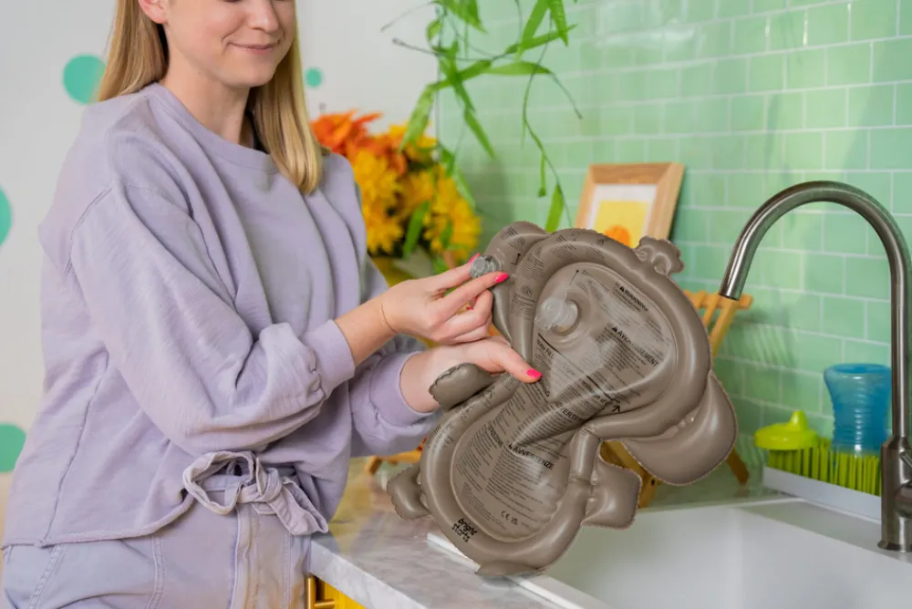 Vandproppen gør det hurtigt og nemt at fylde og tømme måtten; fyld blot vand i og pust den ydre kant op for at komme i gang med legen.