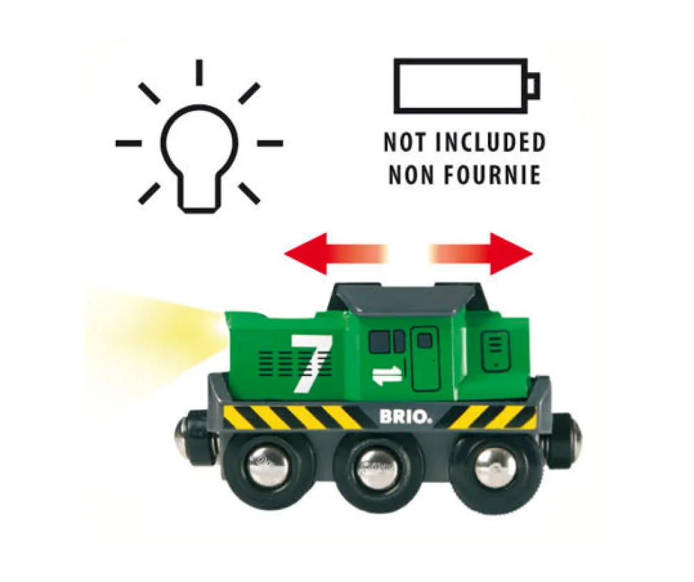 Toget kan ses på lang afstand, når lygten bryder mørket. Ved enkel betjening af knapper kan du standse toget eller køre frem og tilbage. Bruger 1 stk. AA batteri (ikke inkl.)
