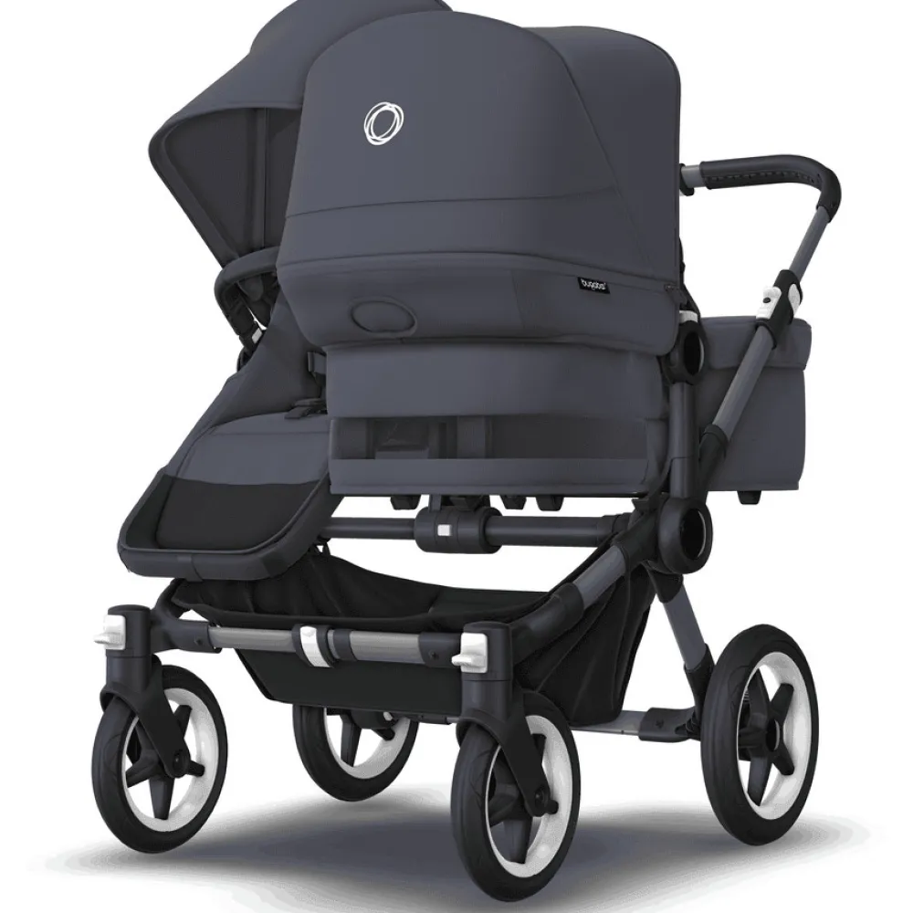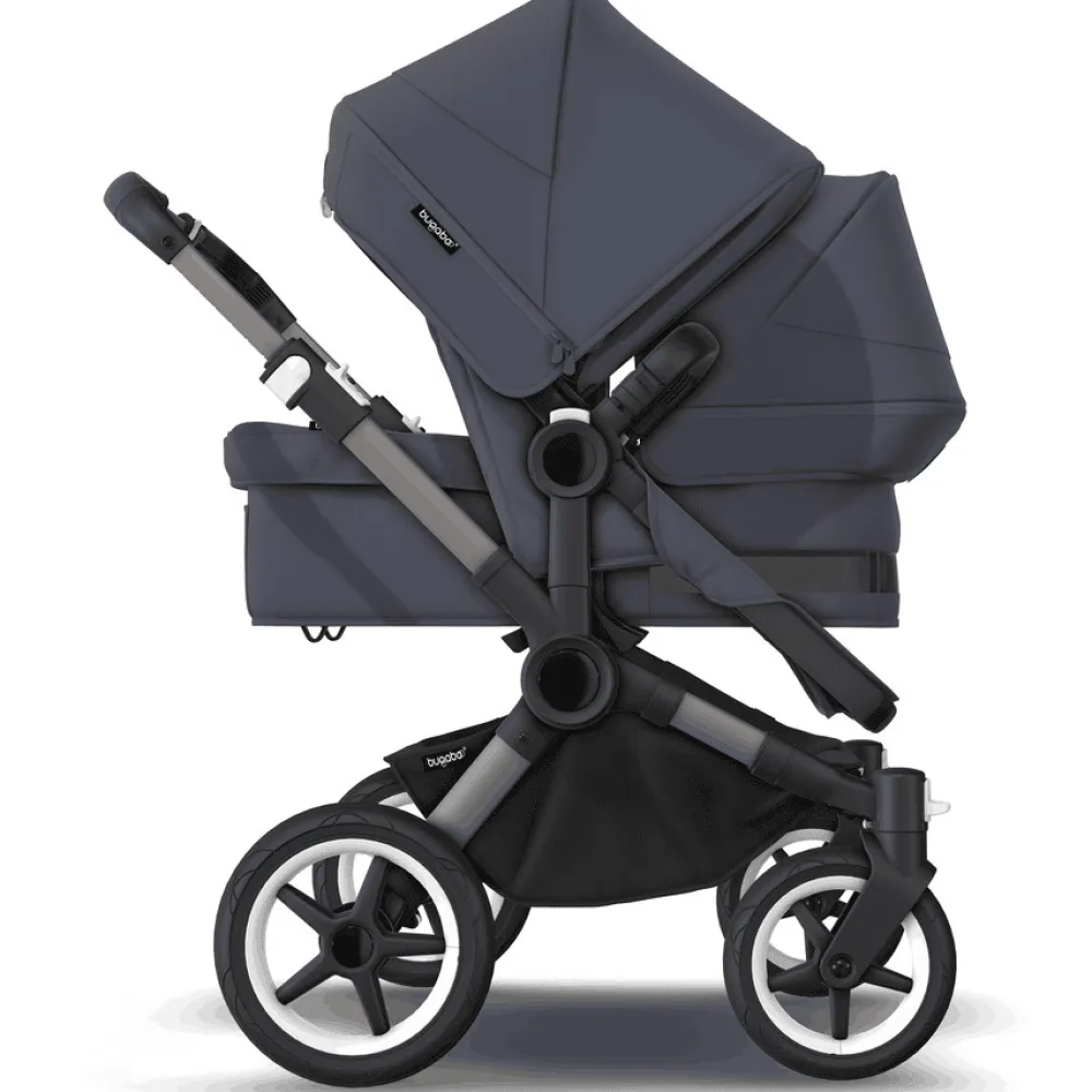 Med denne Bugaboo Donkey5 er der ekstra opbevaring lige ved siden af sædet, så man nemt kan komme til sin taske, og have varekurven fri til indkøb. Varekurven er god rummelig, har ekstra små lommer og er godkendt til 10 kg. Styret har teleskop styr, som nemt justeres i højden, og tilpasses “føreren” af vognen. Med de drejbare forhjul, er det en vogn som er let at køre med, og hvis turen går til mere ujævn terræn f.eks. skoven, er de lige til at låse. Med de skumfyldte hjul og gode affjedring, gør det turen behagelig og komfortabel for både barnet og forældrene. Der er mulighed for at tilkøbe adapter, så de fleste babyautostole nemt klikkes på stellet. Når det ekstra sæde anvendes kan den ekstra opbevaringskurv ikke bruges!