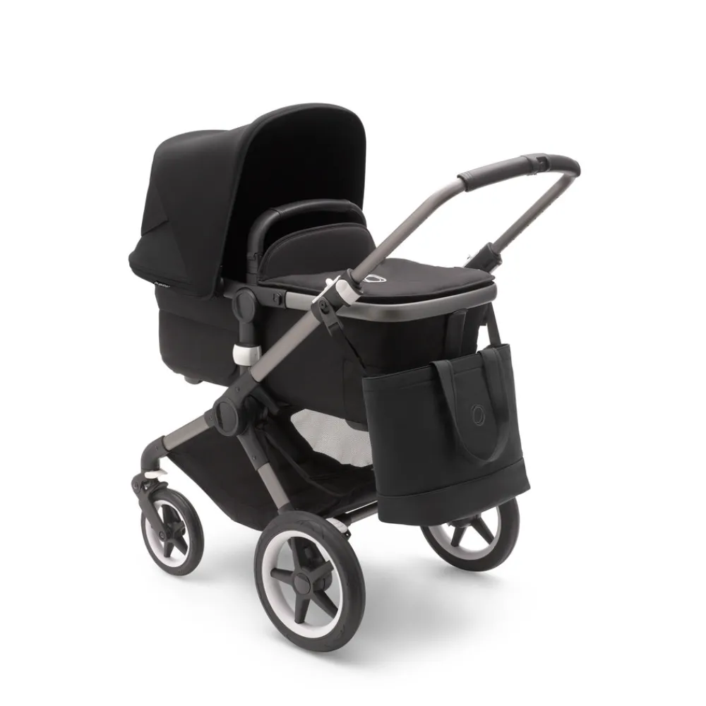 Praktisk og rummelig pusletaske fra Bugaboo, som er lige til at hænge på din Bugaboo vogn – dog hver opmærksom på vægten. Pusletasken kan rumme meget da den er dejlig stor og indeholder mange detaljer som gør den fantastisk at have med sig. Tasken er vandafvisende og lynlåsen er lavet så den er vandtæt, så selv på regnvejrsdage kan pusletasken hænge på vognen. Bunden er fast så tasken kan nemt stå på jorden/gulvet uden den falder sammen. Indvendigt i det store rum er der mindre rum for nem opdeling af tøj, bleer, klude, sutter, mad og hvad der ellers pakkes til turen. Der er blandt andet en isolerende flaskeholder, og der medfølger pusleunderlag, 2 mindre mesh tasker så der kan opdeles rent og beskidt, og der medfølger også en mindre isolerende taske som er praktisk til lidt mad til turen. Det smarte denne pusletaske er at den ikke kun er god til pusletiden, men du får også en taske der kan bruges efterfølgende – måske til en lille weekend tur.