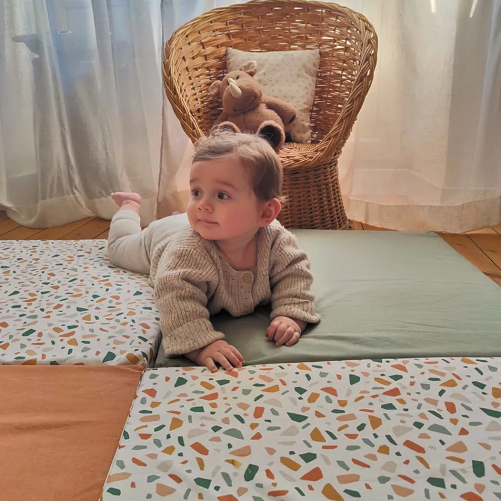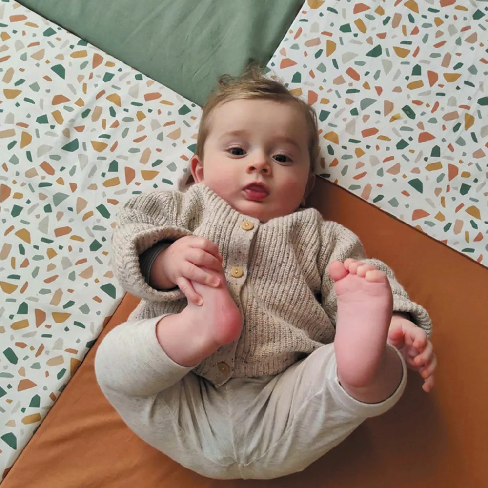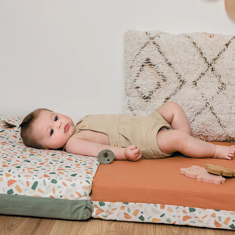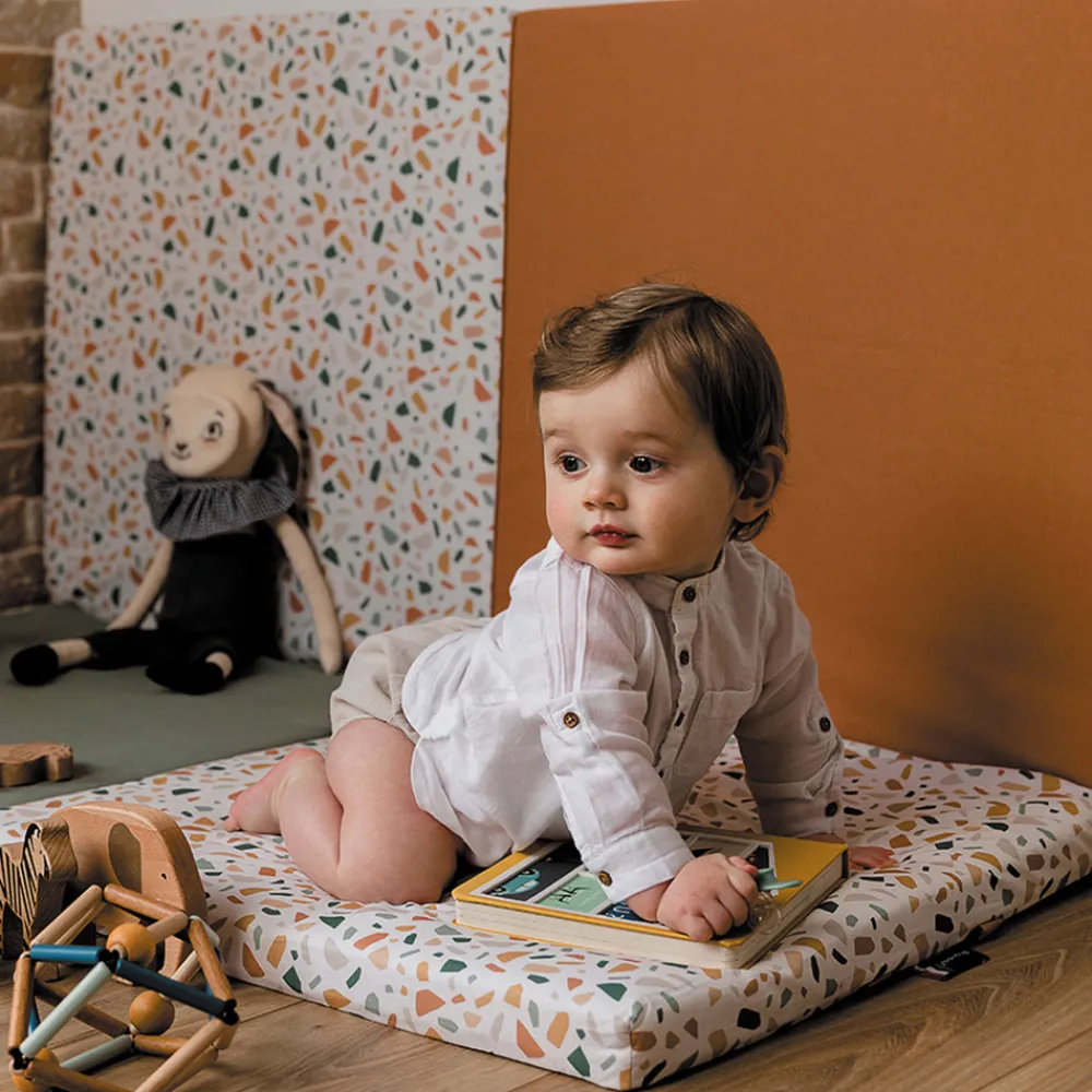 En stor og multifunktionel legemadras fra Candide, der tilbyder en stor aktivitetsflade for barnet at lege, ligge og sidde på.