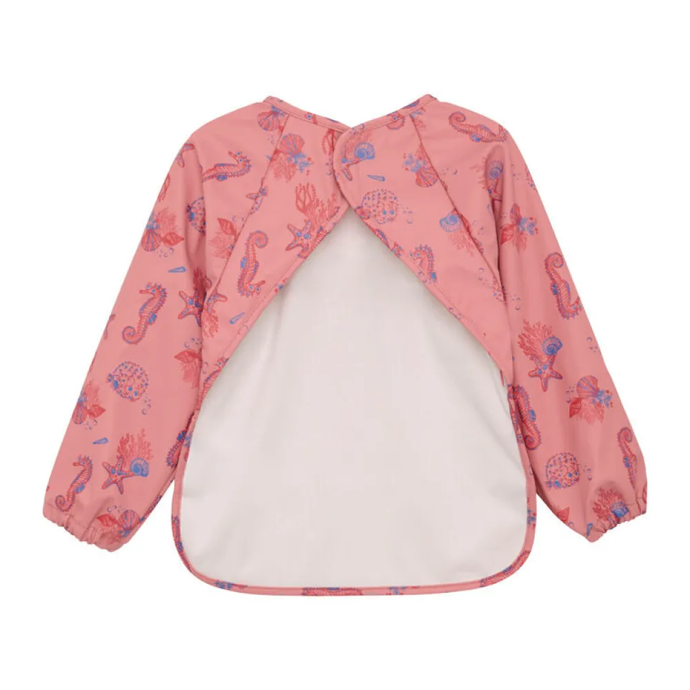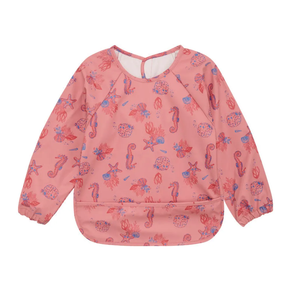 Smart PU-hagesmæk/jakke lavet i recycled materiale. Undgå pletter på dit barns tøj. PU-jakken er utrolig praktisk. Den har velcrolukning i nakken og en opsamlingslomme foran. Praktisk til både spisetid eller ved leg med maling m.m. Med all-over-print. Certificeret i hht. GRS CERES-0366.
