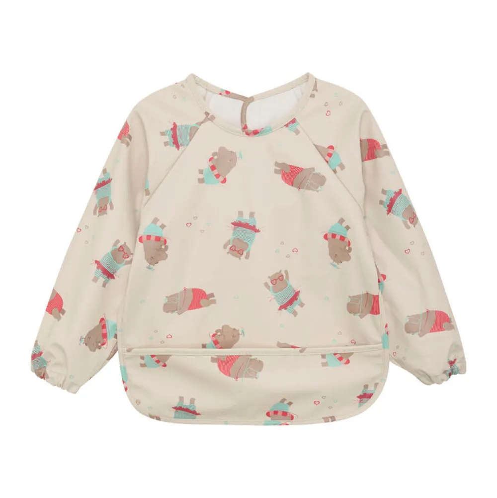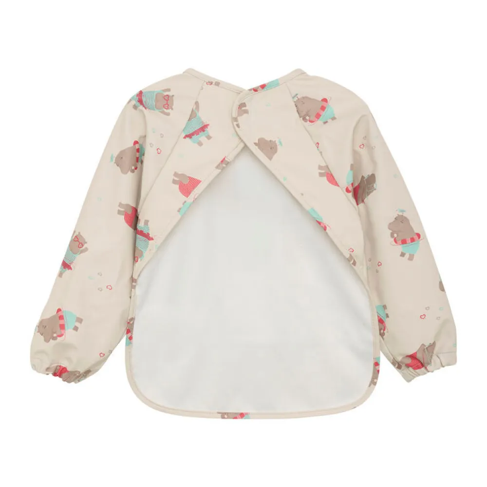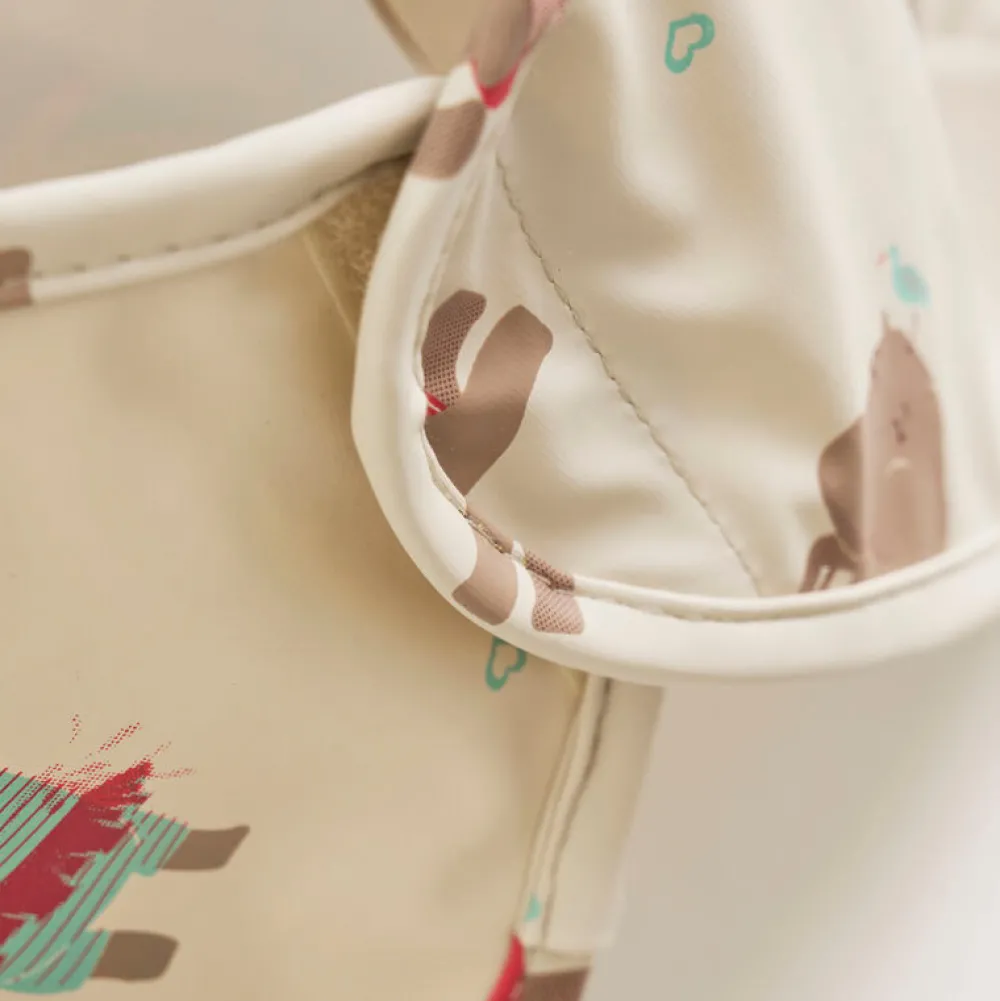 Smart PU-hagesmæk/jakke lavet i recycled materiale. Undgå pletter på dit barns tøj. PU-jakken er utrolig praktisk. Den har velcrolukning i nakken og en opsamlingslomme foran. Praktisk til både spisetid eller ved leg med maling m.m. Med all-over-print. Certificeret i hht. GRS CERES-0366.