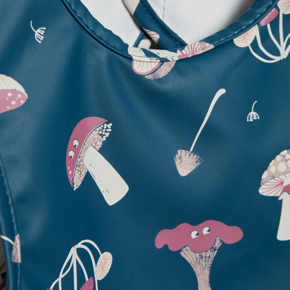 Praktisk all-over print PU spiseforklæde fra CELAVI. Fremstillet i delvist recycled materiale. Materialet er vandtæt, så den beskytter tøjet mod mad og drikke under spisning. Den har lange ærmer med elastik som afslutning og har opsamlingslomme foran. Lukkes i nakken med velcro, så den nemt kommer af og på.