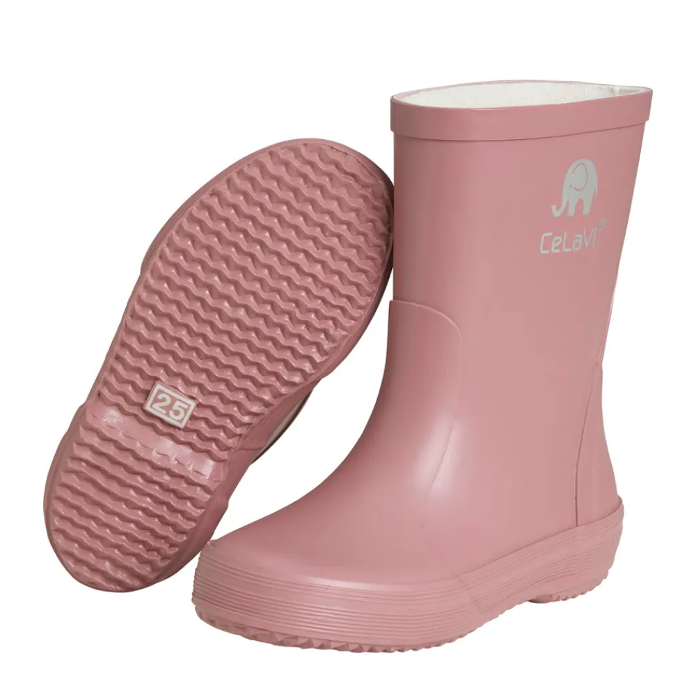 Kvalitetsgummistøvler fra CeLaVi. Støvlerne er håndlavet i lækkert naturgummi, og de har CeLaVi reflekslogo samt en refleksstribe ved hælen. Fås i flere farvervarianter, der matcher CeLaVi’s regntøj. Da gummistøvler til børn ofte bliver brugt flere timer ad gangen, er det vigtig for CeLaVi, at de er komfortable og funktionelle. Modellen er smallere i hælen, for at børnene bedre vil kunne bevæge sig, når de går, løber og leger. For at støvlen sidder optimalt på barnets fod, skal den som tommelfingerregel være fodens længde plus en finger (1-1,5 cm), så der er plads til storetåen og en tyk strømpe.