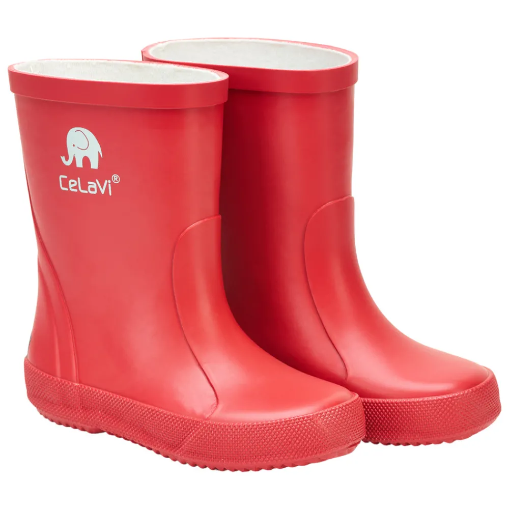 Kvalitetsgummistøvler fra CeLaVi. Støvlerne er håndlavet i lækkert naturgummi, og de har CeLaVi reflekslogo samt en refleksstribe ved hælen. Fås i flere farvervarianter, der matcher CeLaVi’s regntøj. Da gummistøvler til børn ofte bliver brugt flere timer ad gangen, er det vigtig for CeLaVi, at de er komfortable og funktionelle. Modellen er smallere i hælen, for at børnene bedre vil kunne bevæge sig, når de går, løber og leger. For at støvlen sidder optimalt på barnets fod, skal den som tommelfingerregel være fodens længde plus en finger (1-1,5 cm), så der er plads til storetåen og en tyk strømpe.