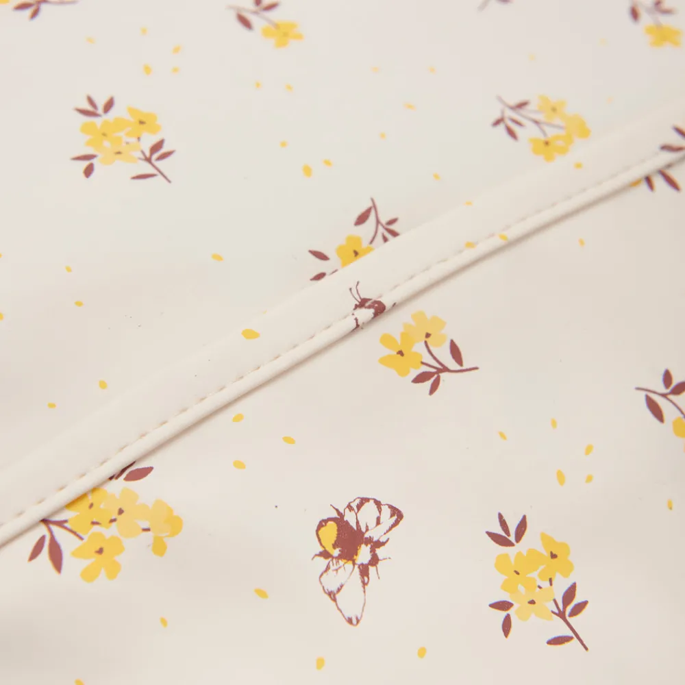 Hagesmæk i recycled polyester. Hagesmækken lukkes med Velcro i nakken. Med all-over-print. Foran har den en praktisk lomme, som fanger spild.