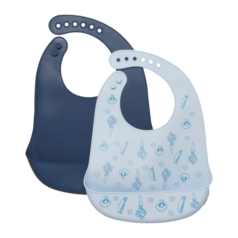 Spisesmæk i silikone. Praktisk hagesmæk der er blød og nem at bruge til baby og børn. Med praktisk opsamler der gør spisetiden nemmere.