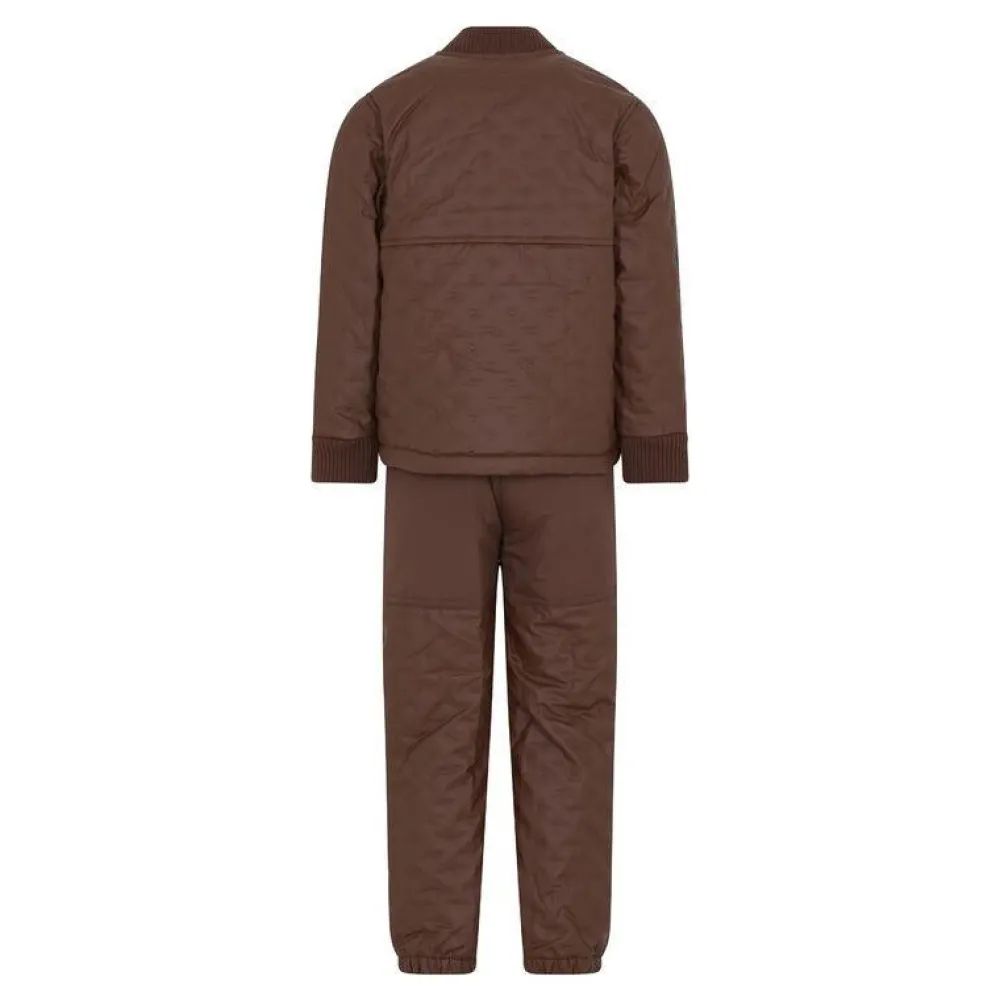 Termotøj med PU-belægning, som gør termotøjet vandtæt. Derudover er sættet foret indvendigt. Ekstra forstærket på knæ og bagpå på bukserne. Bukserne har desuden elastik i talje og ved ankler. Jakken har ribkant ved hals og håndled samt lynlåslukning. CeLaVi-logo foran.