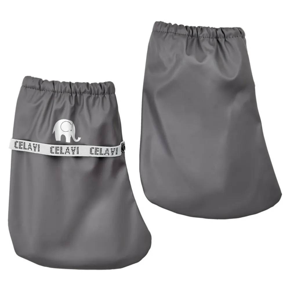 Praktiske og lune PU regnfutter til barnets fødder, inden de begynder at bruge sko og kan gå – så kan de nyde og hygge sig i sandkassen, det våde græs og legepladsen med de andre børn. Futterne holder fødderne tørre og varme og har elastik bånd i anklen, der lukkes med en trykknap, og holder helt tæt samt sidder fast på foden. Der er en fin refleks i CeLaVi elefant logo. Futterne er med lækkert inderfoer af fleece som er dejligt varmt og blødt for fødderne. Nemme at rengøre med en våd klud, men kan også vaskes i maskinen på 40 grader hvis det bliver nødvendigt.