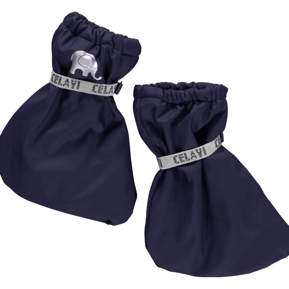 Praktiske og lune PU regnfutter til barnets fødder, inden de begynder at bruge sko og kan gå – så kan de nyde og hygge sig i sandkassen, det våde græs og legepladsen med de andre børn. Futterne holder fødderne tørre og varme og har elastik bånd i anklen, der lukkes med en trykknap, og holder helt tæt samt sidder fast på foden. Der er en fin refleks i CeLaVi elefant logo. Futterne er med lækkert inderfoer af fleece som er dejligt varmt og blødt for fødderne. Nemme at rengøre med en våd klud, men kan også vaskes i maskinen på 40 grader hvis det bliver nødvendigt.