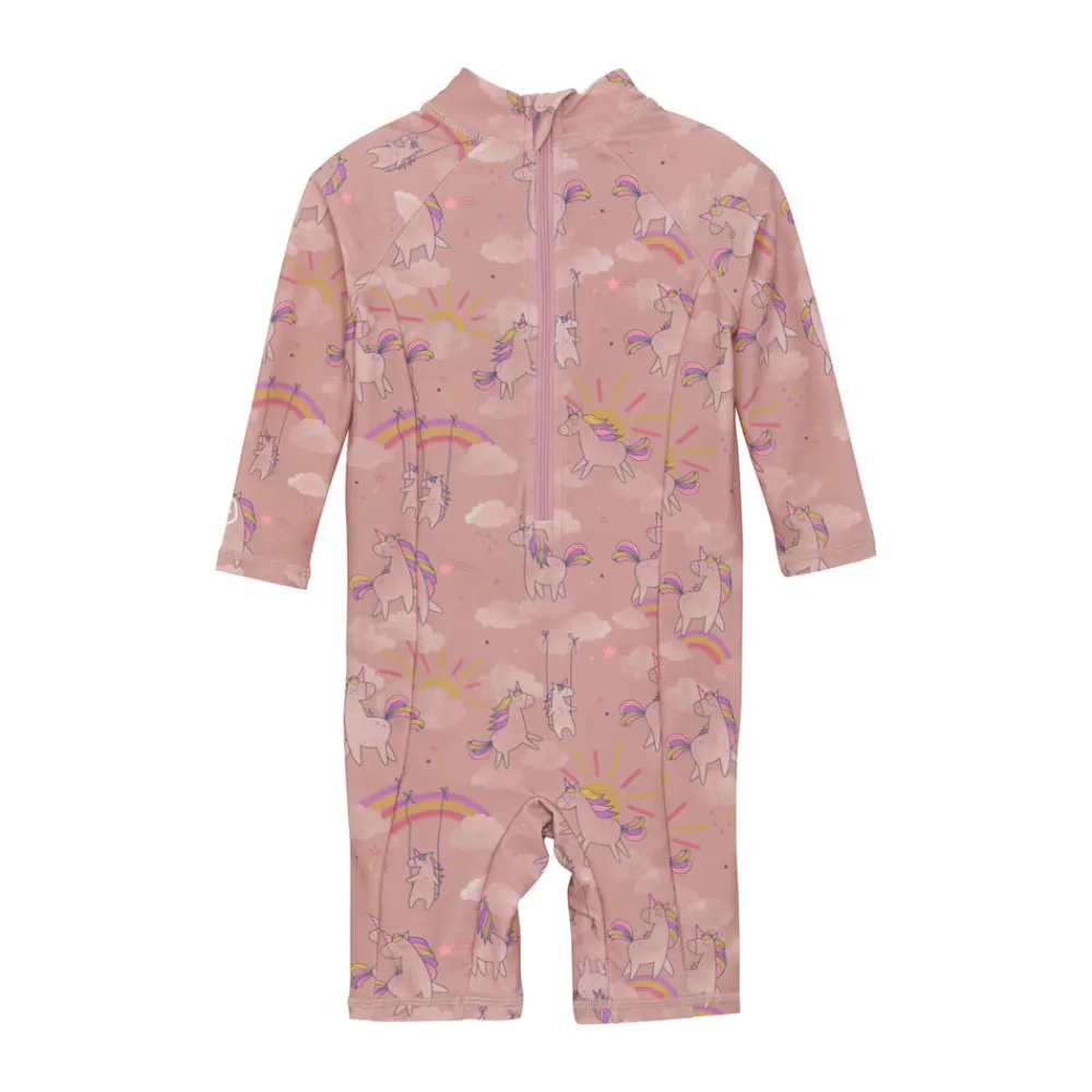 Smart svømmedragt med all-over print. Den har korte ben og korte raglanærmer. Svømmedragten fra Color Kids har en behagelig pasform med strækbart stof. Den lukkes med lynlås bagpå.