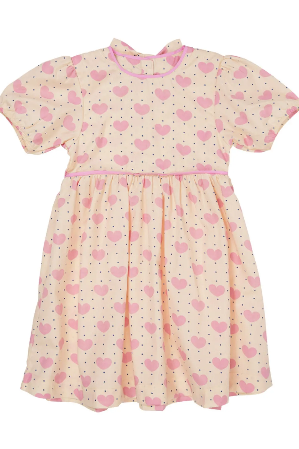 Tilføj et strejf af charme til enhver lejlighed med denne yndige Heart & Dots-kjole med hævede ærmer. Denne kjole er lavet af blødt, åndbart stof og kombinerer legende hjerte- og prikmønstre med et finurligt ærmedesign.