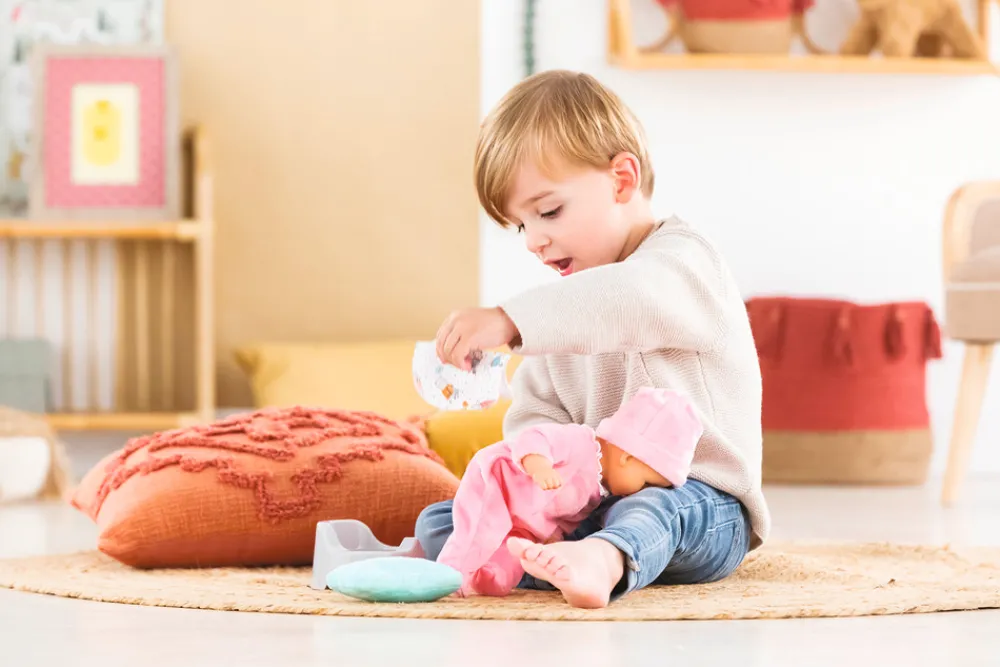 Dette interaktive potte-sæt er perfekt til at lære små børn at passe deres dukke og gøre legen endnu mere realistisk. Sættet indeholder en potte, en stofserviet og et låg, som tilsammen skaber en autentisk oplevelse af at tage sig af en babydukke.