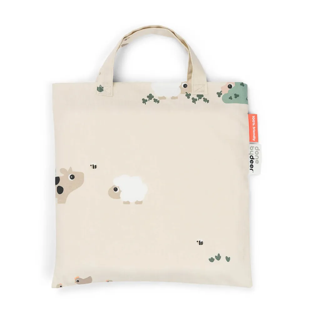 * Sengetøjet er pakket i en lille stofpose, der matcher sengesættet, og som kan bruges til legetøj, skiftetøj, sko eller andre praktiske formål