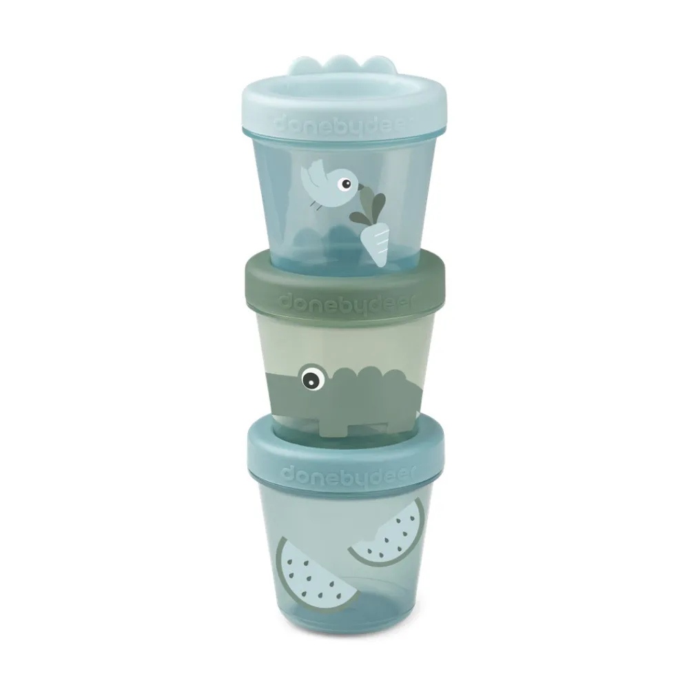 Brug dette praktiske sæt af tre babymad bøtter og lad en Deer friend holde et vågent øje med godterne indeni. Bøtterne er perfekte til snacks til børnehaven eller skolen eller til at gemme rester af hjemmelavet mos i fryseren. De transparante beholdere kan stables og er nemme at opbevare både når de er i brug, og når de gemmes væk. Skruelågene gør dem både luft- og vandtætte og søde detaljer med Crocos krokodilletakker på lågene samt Deer friends print sikrer en sjov snacktid. Giv dit barn en hyggestund med et lille måltid og vores Deer friends. Babymad bøtterne i nuancer af blå har forskellige sjove print. En med Birdee, der flyver afsted med en gulerod, en anden med Croco på jagt efter snacks og en tredje med vandmelon.