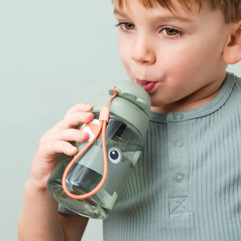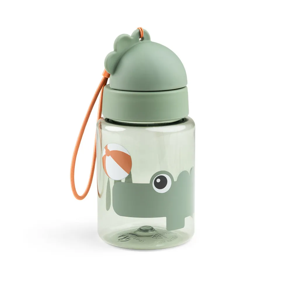 Vores grønne flaske er en fantastisk følgesvend til dit barns daglige aktiviteter. Denne gennemsigtige flaske har et foldbart sugerør for nem drikning, med et låg der smart forhindrer spild, når det ikke er i brug. Små fingre kan nemt få adgang til sugerøret takket være de legende krokodilleskæl på låget.