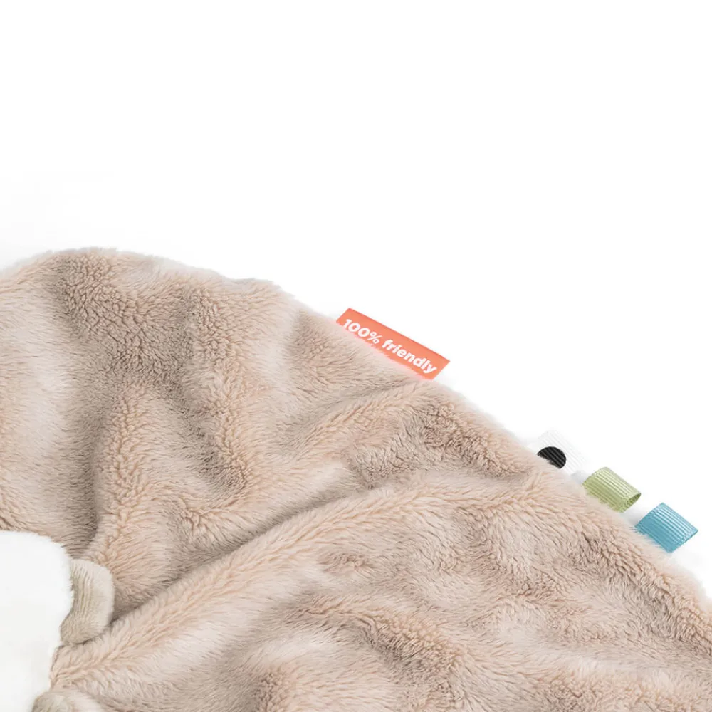 Blød og trøstende nusseklud til dit barn, der er designet til at stimulere dit barns sanser og give tryghed. De forskellige teksturer og farvede tags vil stimulere dit barns sanser, mens den bløde og behagelige klud er perfekt for små hænder at holde fast i og kramme.