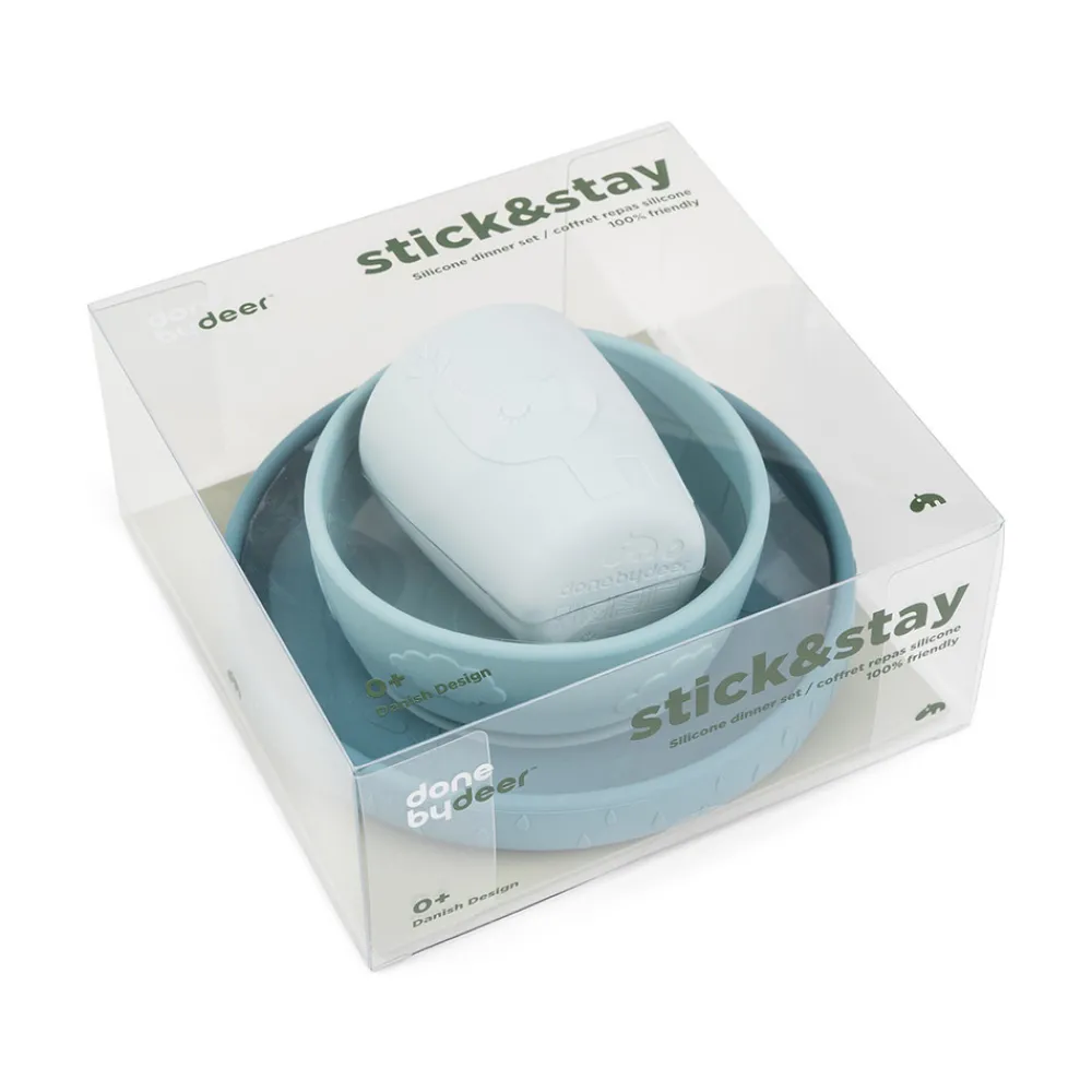 • Sugekoppen under tallerkenen og skålen holder servicet på plads under måltidet