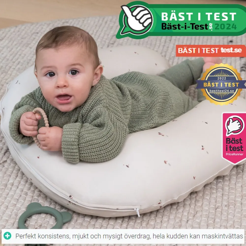 Doomoo Ammepude er en ultrablød og ergonomisk ammepude, der passer til små og store. Puden anbefales af amme jordemødre for sit professionelle design. Med Doomoo Ammepude får moderen ordentlig støtte til skuldre, ryg og arme, mens barnet får den rigtige ammestilling. Ammepudens runde form gør, at puden sidder tæt om mors mave og behøver ikke at bindes. Puden er fyldt med bittesmå, raslefri EPS-kugler, der former sig efter mor og babys krop. Den er blød og behagelig, og bevarer sin form gennem hele amningen, uden at “falde” ned. På den måde mister barnet ikke grebet om brystvorten og får en optimal amme stilling. Doomoos ammepude har flere smarte funktioner. Den kan bruges som en behagelig liggestøtte til barnet, både når det ligger på maven og på ryggen, og som en sikker siddestøtte, som en “at lære at sidde hynde”. EPS-bolde indeholder meget luft, så boldene bliver flade efter lidt brug. Derfor kan Doomoos kvalitetspuder fyldes med nye kugler via en lynlås på inder puden. EPS-kuglerne har en antibakteriel egenskab, som er gavnlig i amme situationer. Bakterier kan ikke overleve naturligt i mikrosfærernes miljø. Med Doomoo Ammepuden bliver både mor og barn mere afslappede og får en funktionel og hyggelig amme tid.