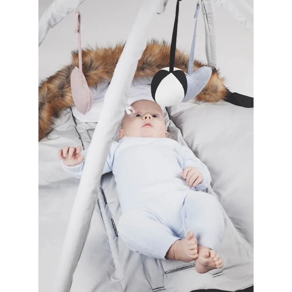 Tilpasset 4 kørepose modellerØko Tex 100 certificerede tekstilerMed 3 bløde vedhæng/legetøjMiljøvenlig Nem installation Til leg og stimulering