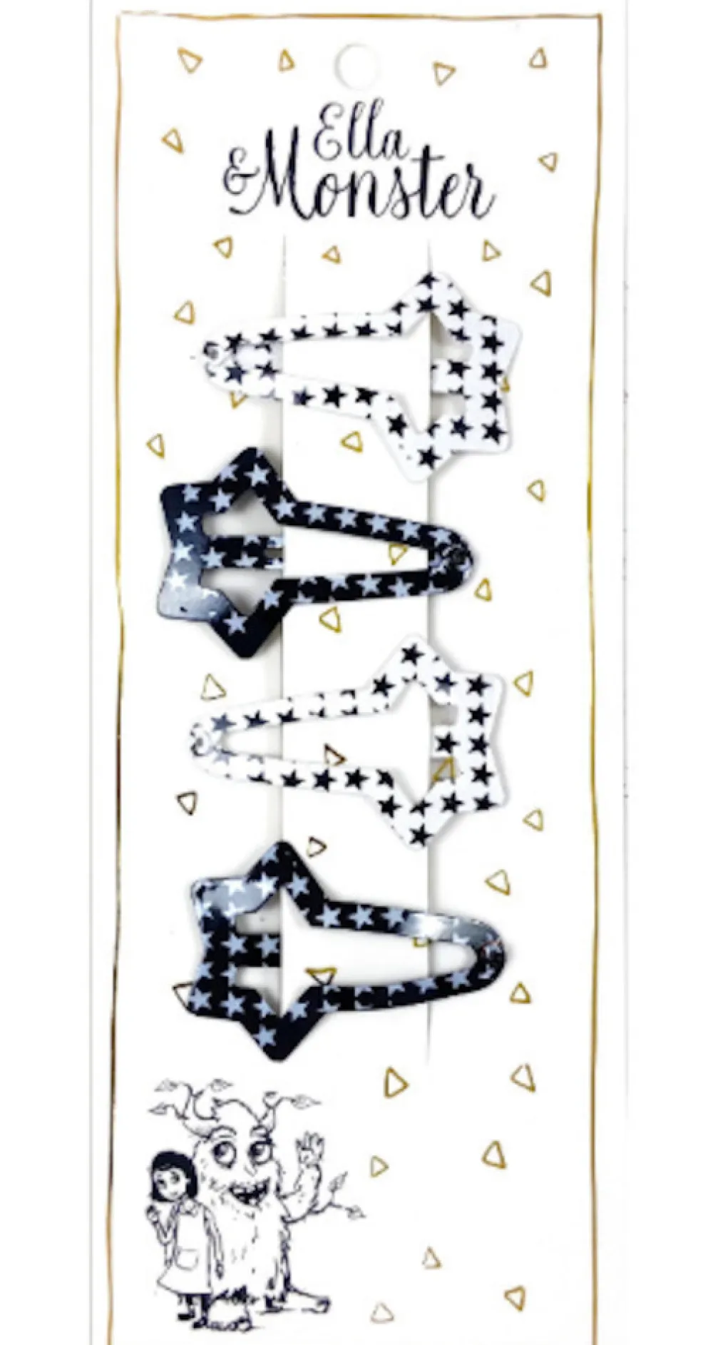 Stjerneskud og striber i skøn kombi! Et spændende sæt med glitrende stjerner og sejt sort/hvidt mønster – til børn der elsker at skinne igennem med både fest og attitude. Let at sætte i – og umulige at overse.