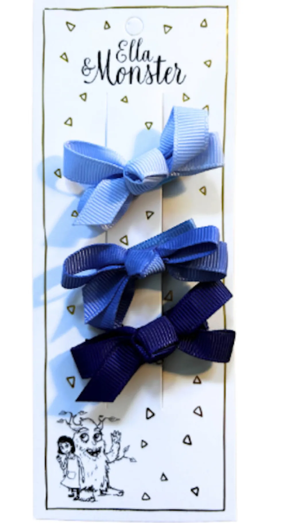 Ella & Monster Hårspænde Sæt – Blå Sløjfer- Festtøj & Tilbehør