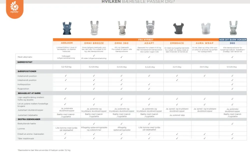 En bæresele kan være svær at undvære og vil hurtig blive en fast del af familiens hverdag, om det er hjemme eller ude. Med en bæresele får man ikke kun hænderne fri men også en god kontakt med baby fra nyfødt. Ergobaby Embrace Soft Air Mesh kan anvendes fra nyfødt (3 kg.) og helt frem til barnet vejer 11 kg.