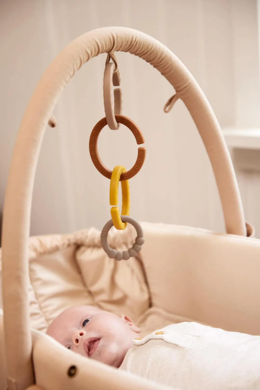 Aktivitetsbøjlen er fremstillet af blød GOTS-certificeret økologisk bomuld.