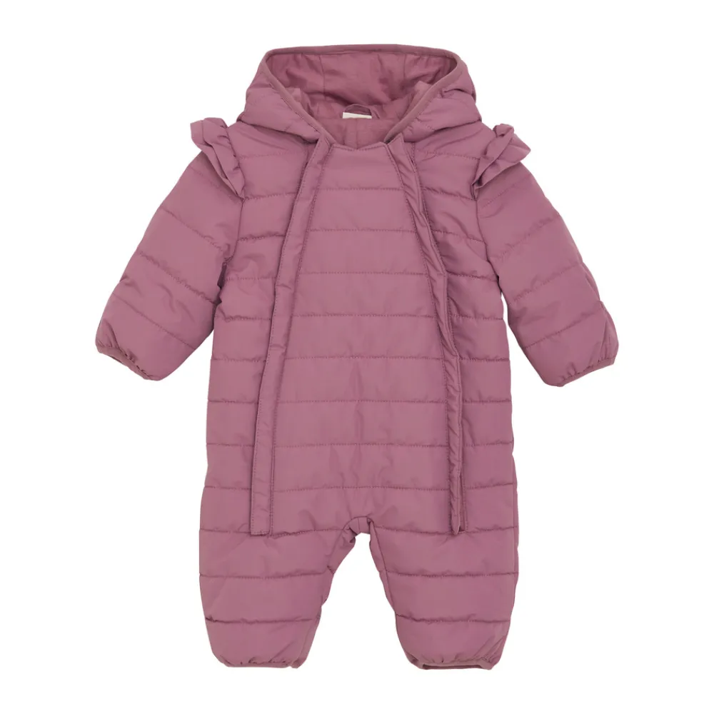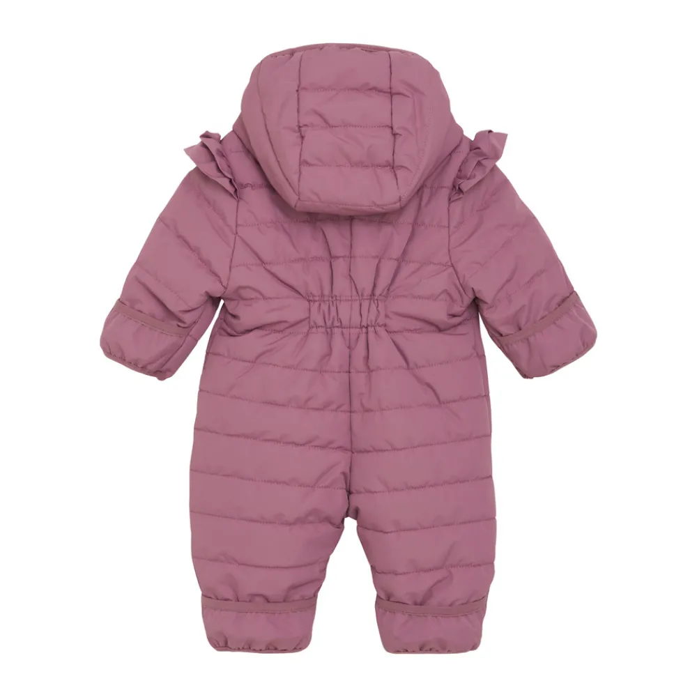 Dragten er udstyret med to lynlåse, der går fra midten og ned i hvert ben, hvilket gør den nem at tage af og på. Den har en fast hætte samt foldbare fødder og luffer, som giver ekstra varme og fleksibilitet til de mindste. Der er vendbare luffer i alle størrelse, og futter vendbart op til størrelse 74