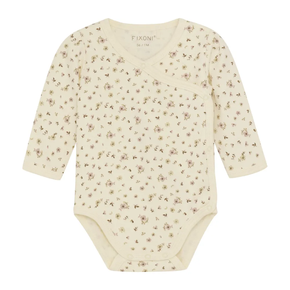 Langærmet wrap body med all-over print. Nem at tage af og på. Perfekt til babyer.