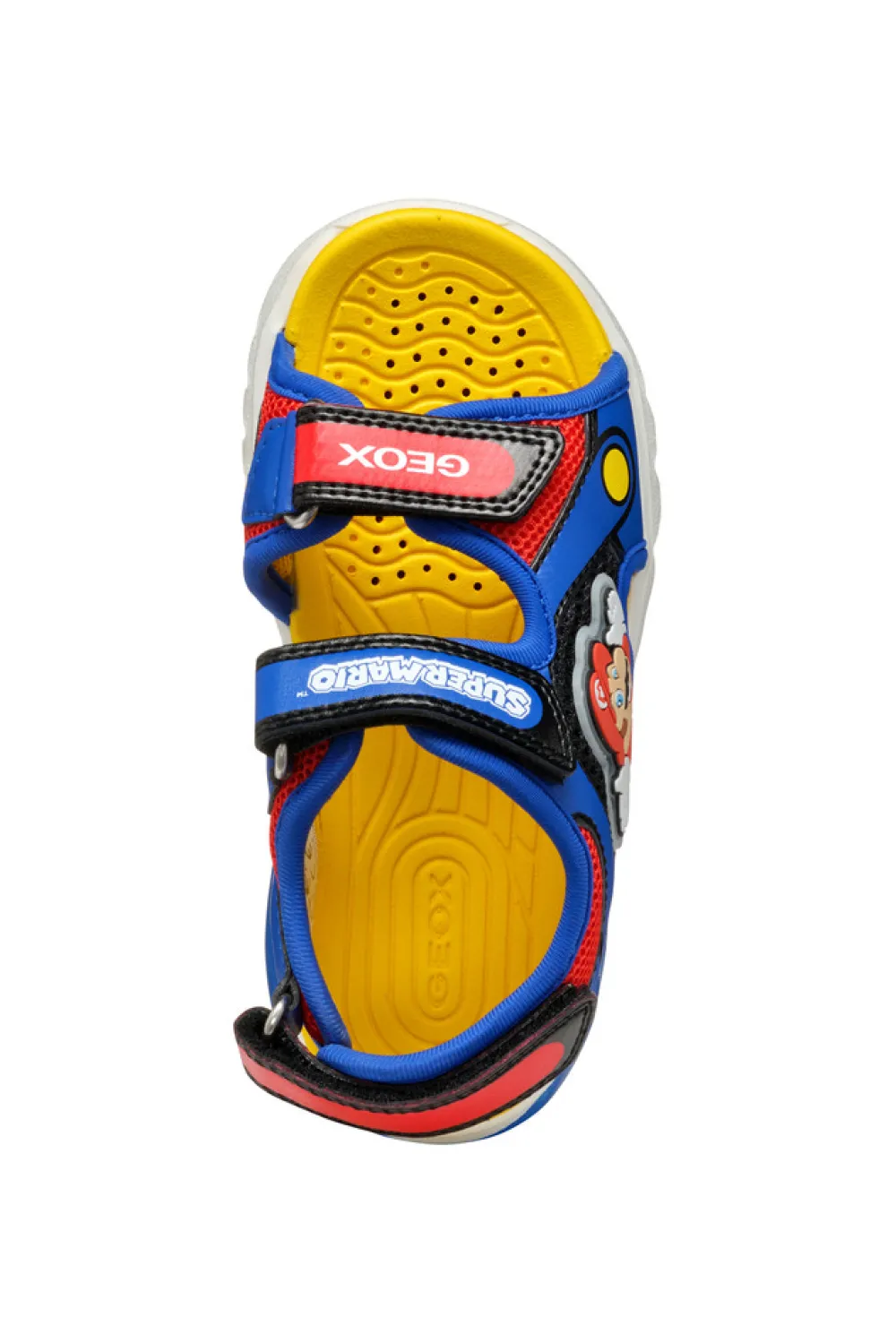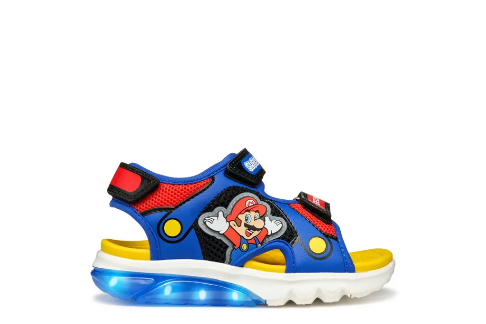 Ciberdron er en sandal til drenge lavet af mesh og et læderlignende materiale med lys indbygget i ydersålen. Denne sandal er støddæmpende, sporty og nem at justere. Som et produkt af samarbejdet mellem Geox og Nintendo har den en livlig overdel med grafiske designs baseret på videospillet Super Mario.