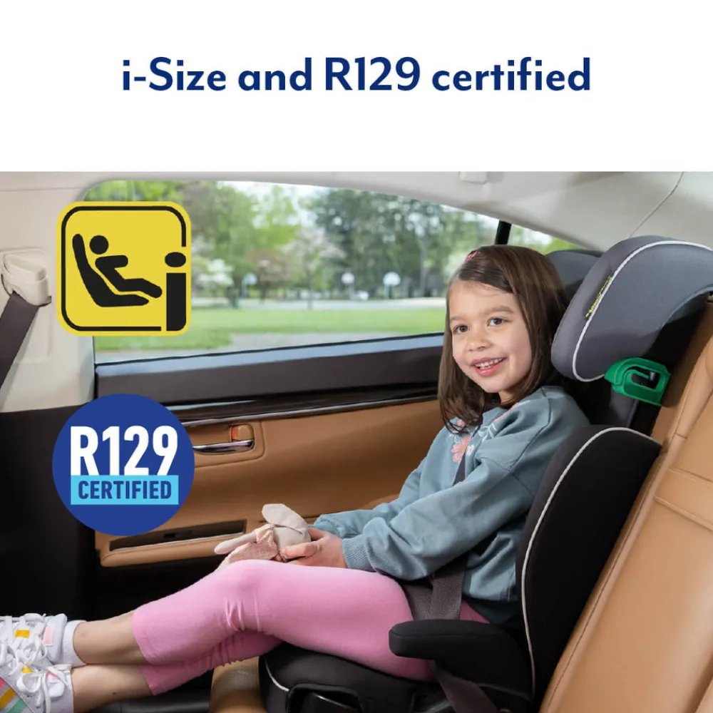 i-Size og R129 godkendt.Safety Surround™ Side Impact Protection omslutter dit barn for forbedret beskyttelse.Letvægt på kun 3,4 kg, hvilket gør det nemt at flytte mellem køretøjer for problemfri rejser.Åbne bælteføringssløjfer hjælper med at sikre korrekt placering af sikkerhedsselen.Maskinvaskbare betræk for nem rengøring.Premium polstret sæde leverer komfort på hver eneste tur.10-positioners nakkestøtte giver korrekt støtte til dit barns hoved og nakke.2 udtrækkelige kopholdere holder drikkevarer, gadgets og godter lige inden for rækkevidde.Aftagelige polstrede armlænsbetræk for ekstra komfort på hver rejse.Maskinvaskbare betræk.Fremadvendt højrygget booster fra 100-150 cm (ca. 3,5 til 12 år)Mål: L: 39 x B: 45,6 x H: 60,5-81,5 cm.Vægt: 3,4 kg.