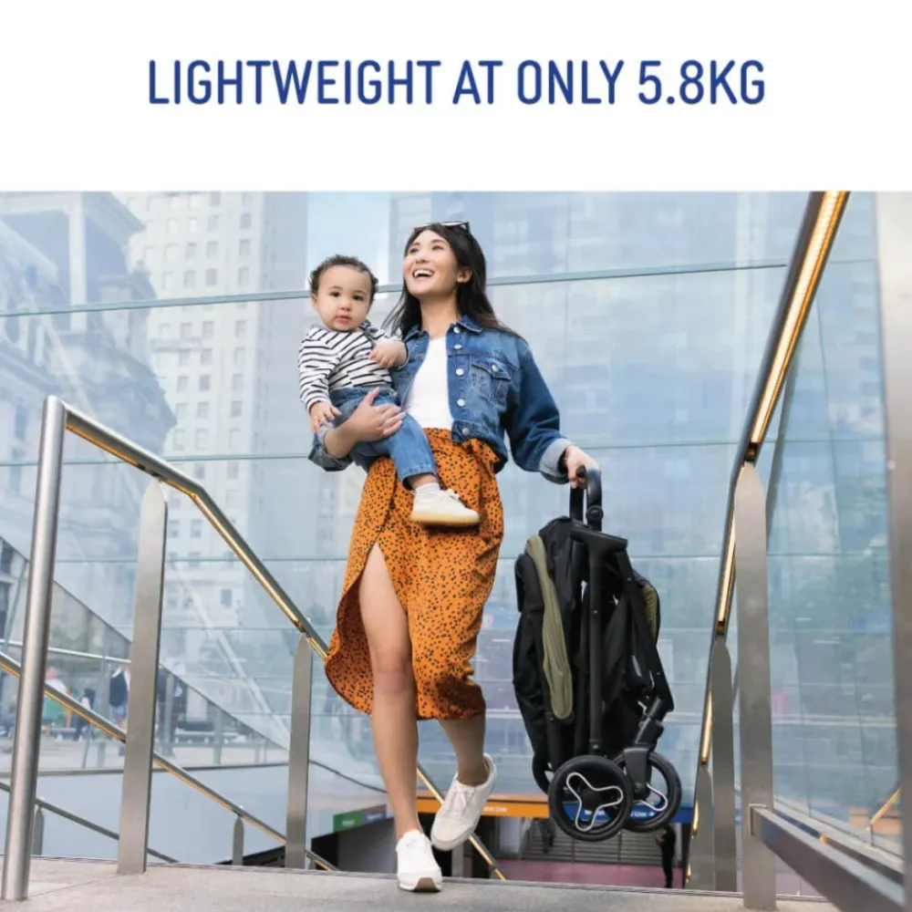Automatisk, fritstående foldning.Letvægt på kun 5,8 kg.Integreret foldelås holder klapvognen pænt pakket væk, når den er opbevaret.Bøjle fungerer som et praktisk bærehåndtag.Aftagelig bøjle for hurtig ind- og udstigning.Stor, let tilgængelig opbevaringskurv.Egnet fra fødslen med liggeflad tilbagelæning.Flerpositions tilbagelæning sikrer, at dit barn er komfortabelt.Justerbar lægstøtte.Strikket kaleche med UPF 50+ giver justerbare mængder skygge og beskyttelse.Justerbar 3- eller 5-punktssele.Enkelttrins bremse.Regnslag medfølger.