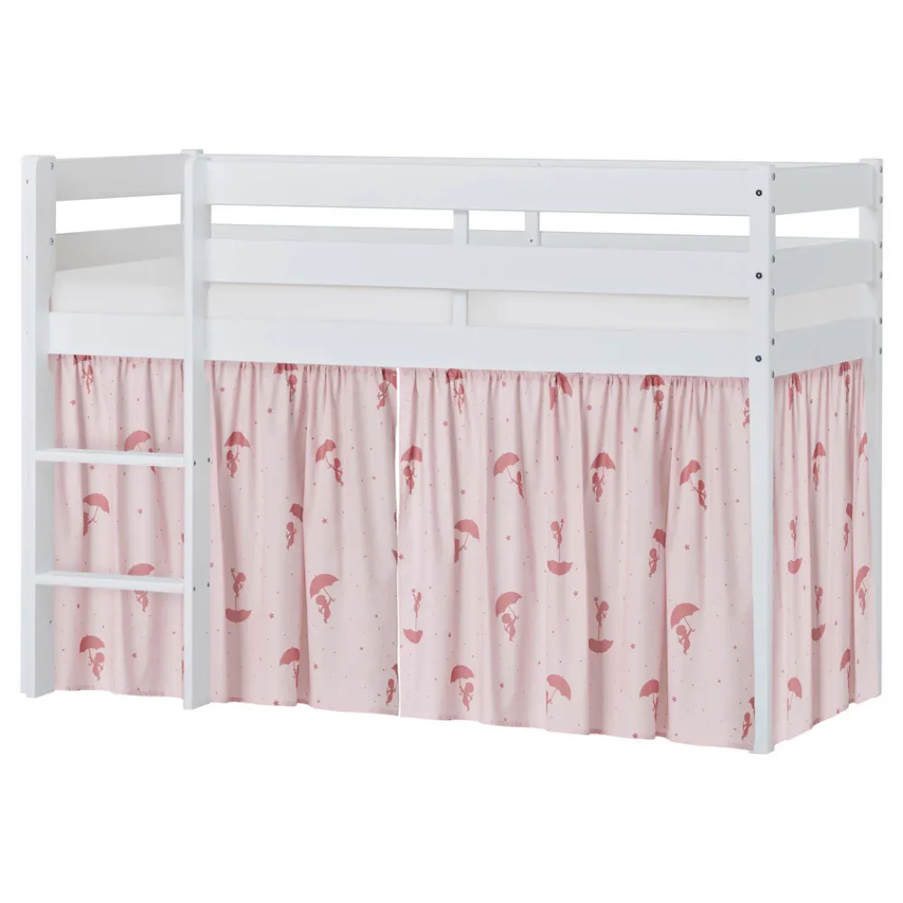 Forhænget passer til halvhøje & køjesenge med madrasstørrelse 70×160, 70×190 og 90×200 cm.