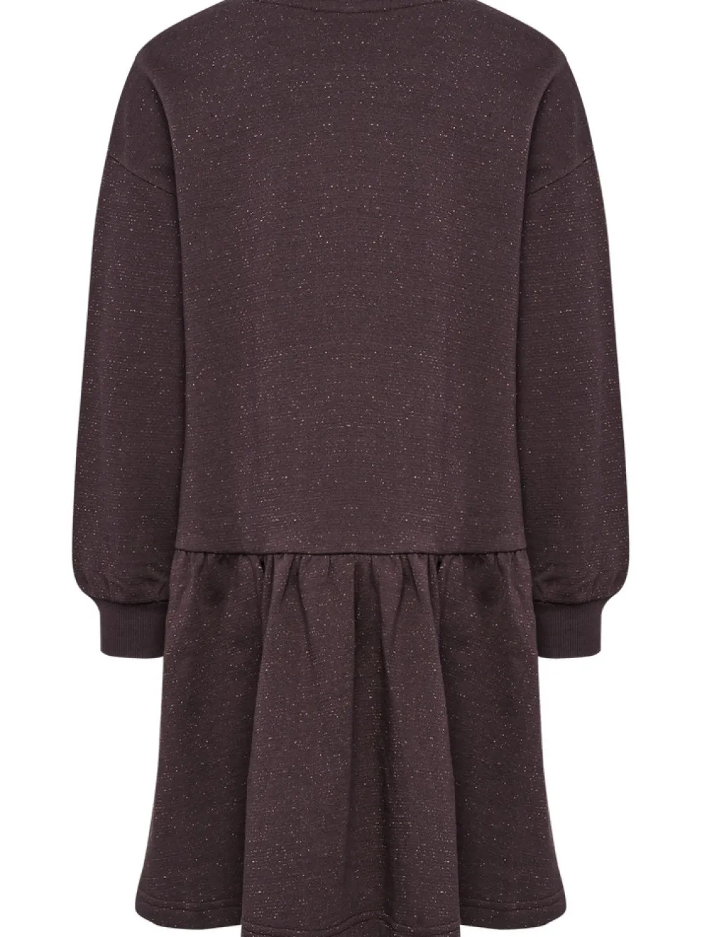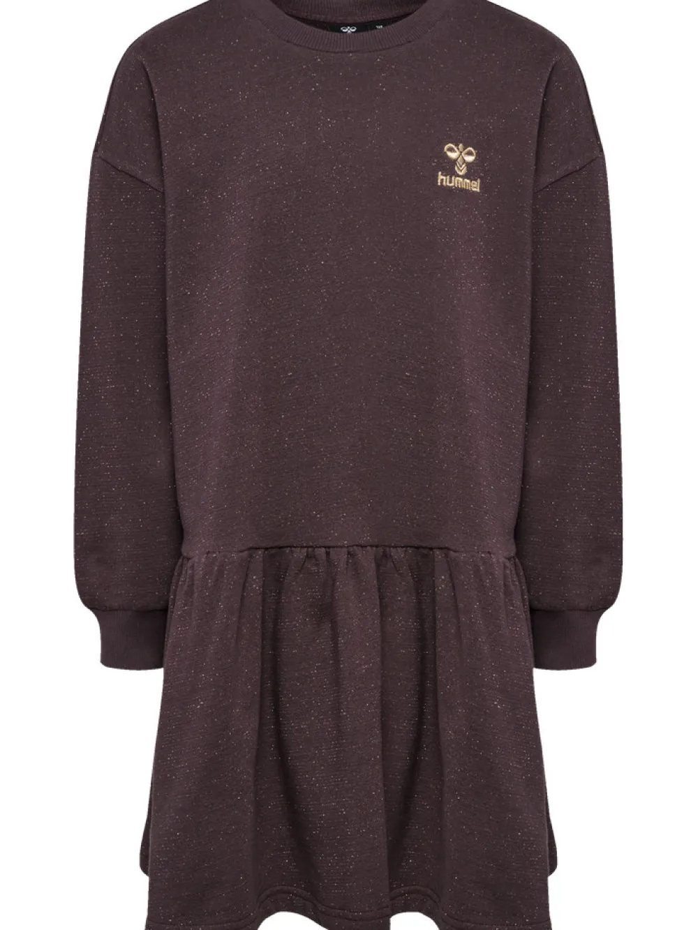 CAROLA DRESS L/S er fremstillet af blødt sweatstof med økologisk bomuld, som har en glitrende finish. Denne langærmede kjole har rund hals og et iøjnefaldende broderet logo med metallic detaljer på brystet.