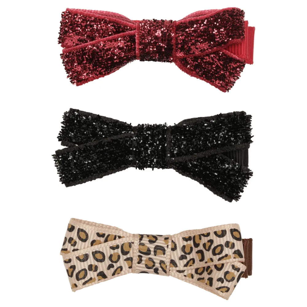3 pak mix spænder , leopard samt glitter rød og sort (5 cm)