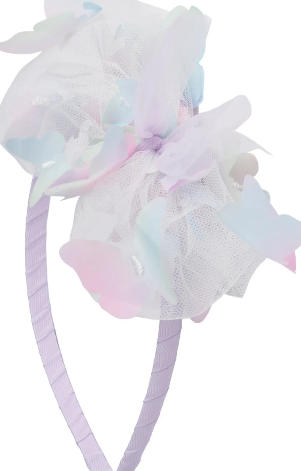 Hårbøjle med tone i tone blomst og sommerfugl udskæring