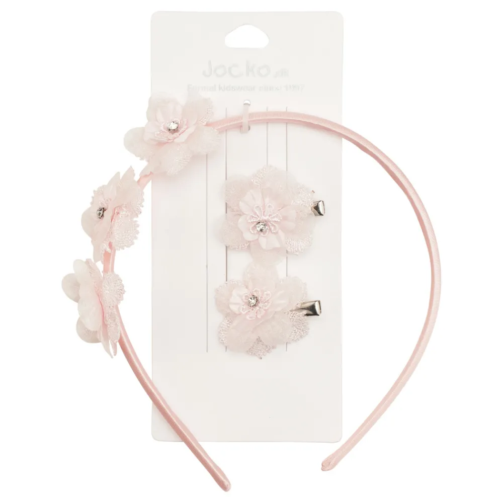 Sæt bestående af diadem og 2 blomsterspænder pyntet med similisten
