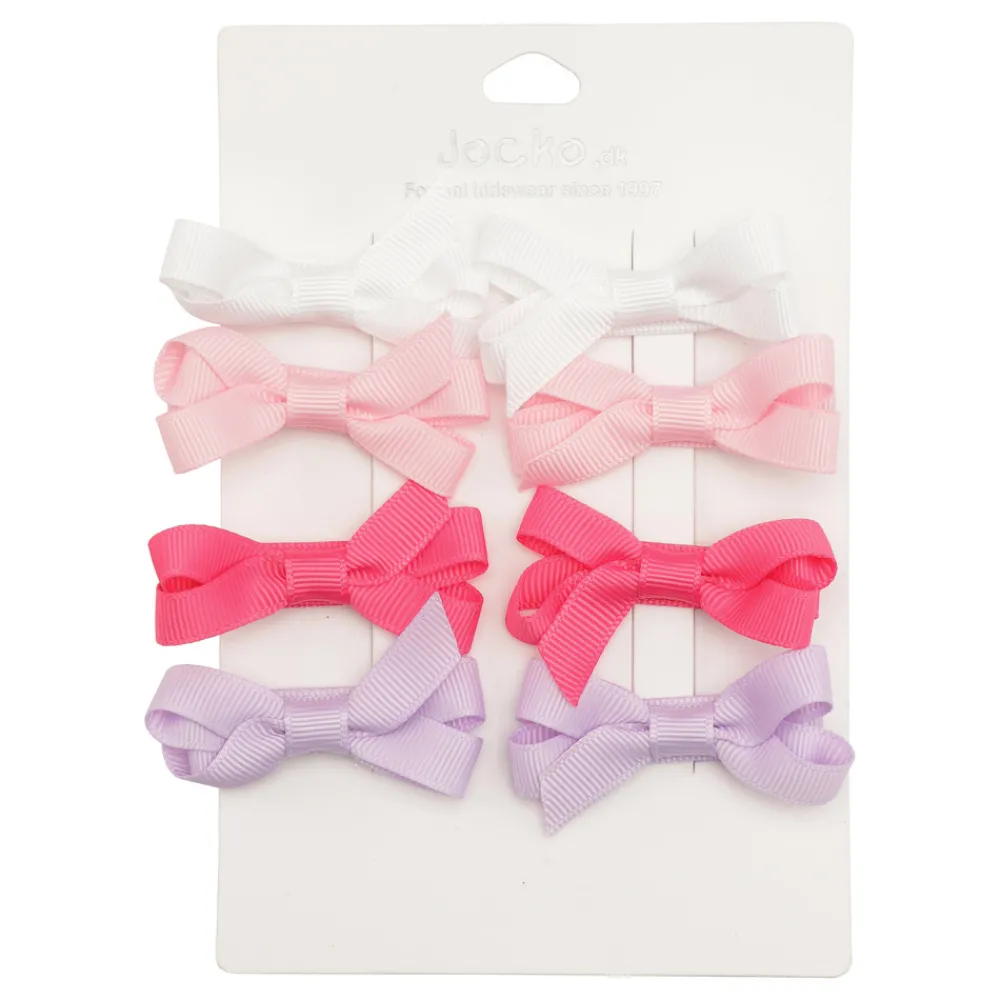 Pakke med 4 x 2 sløjfe spænder i hvis,lyserød,pink og lilla