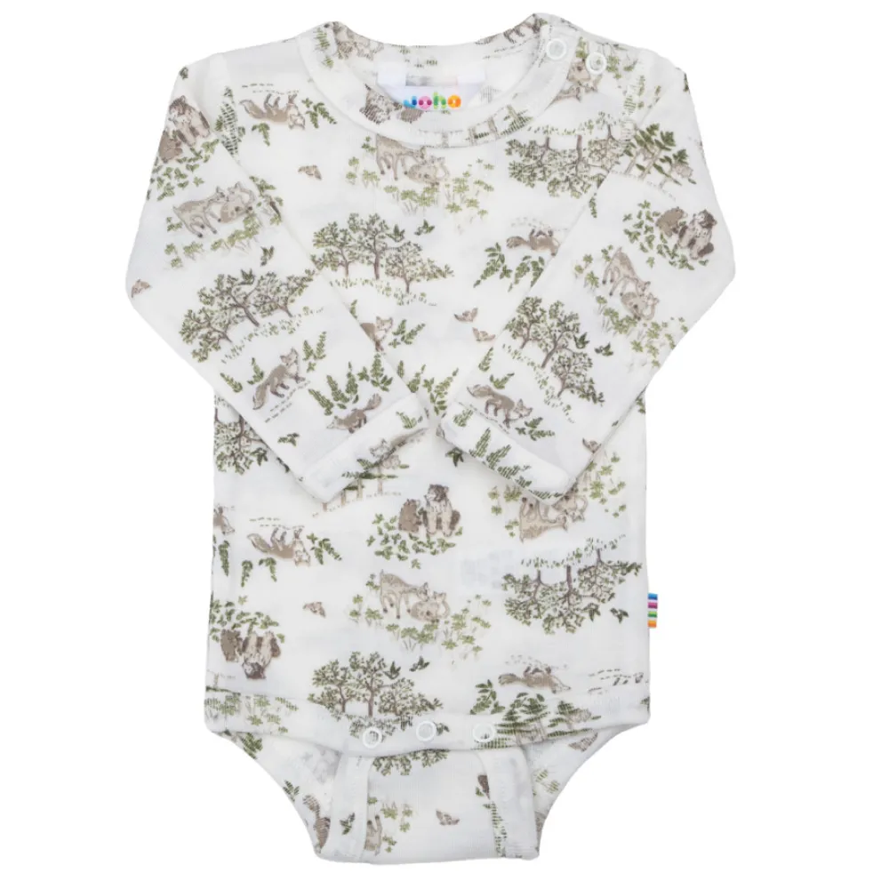 Langærmet body med praktiske trykknapper på den ene skulder og mellem benene for nem og bekvem påklædning. Fremstillet i en ekstra fin uldkvalitet med silke, som føles utroligt blød mod huden og har et let, elegant skær. Det søde print tilføjer et charmerende og legende udtryk.