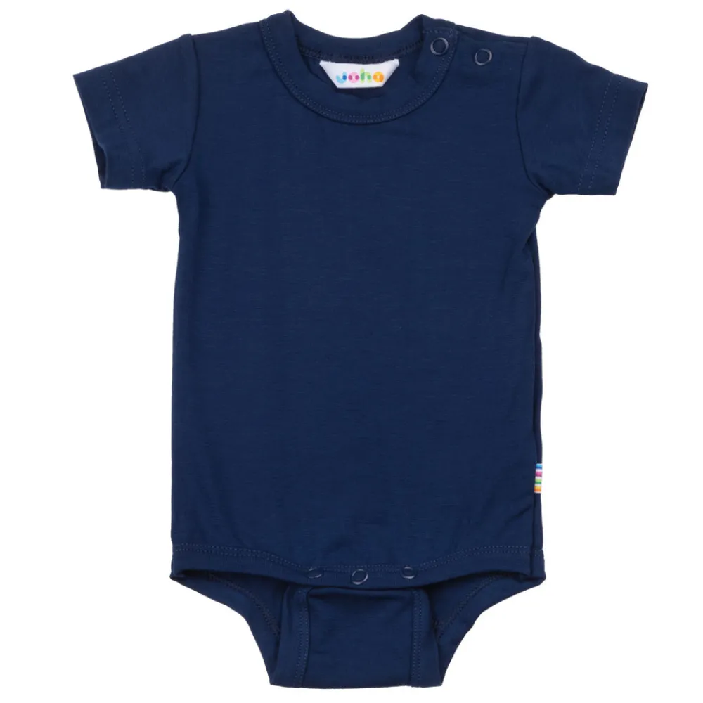 Trykknapper på den ene skulder samt mellem benene for en nemmere påklædning. En elastisk økologisk bambuskvalitet som er dejlig blød og lækker. Perfekt at bruge inderst.