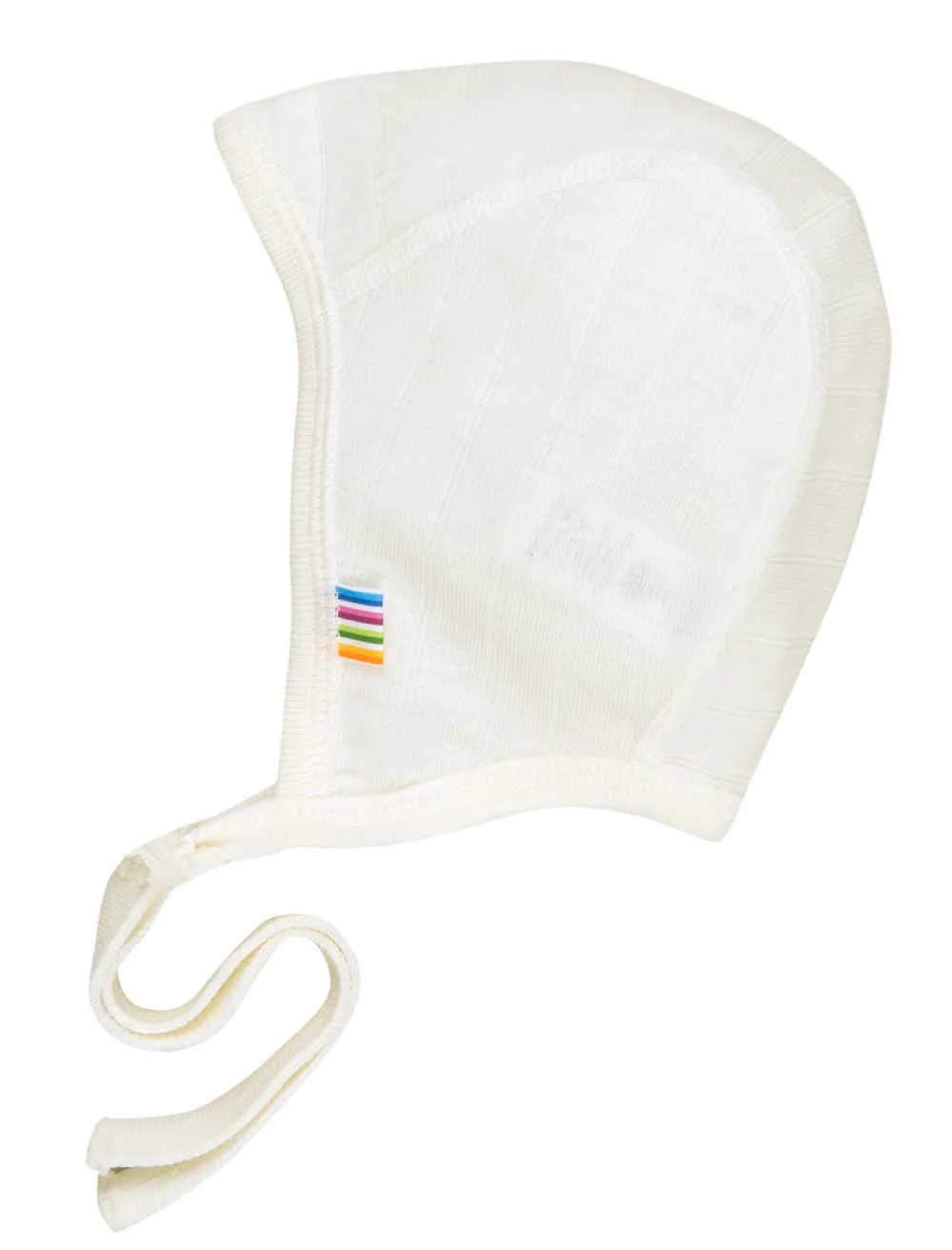 Hjelm med bindebånd. Enkelt lags. God pasform. En ekstra fin uldkvalitet med silke som er dejlig blød. Lodret rille mønster og et lidt skinnende udtryk gør denne kvalitet ekstra fin og lækker. Ensfarvet. Wool rich blend og Oeko-tex 100 mærket.