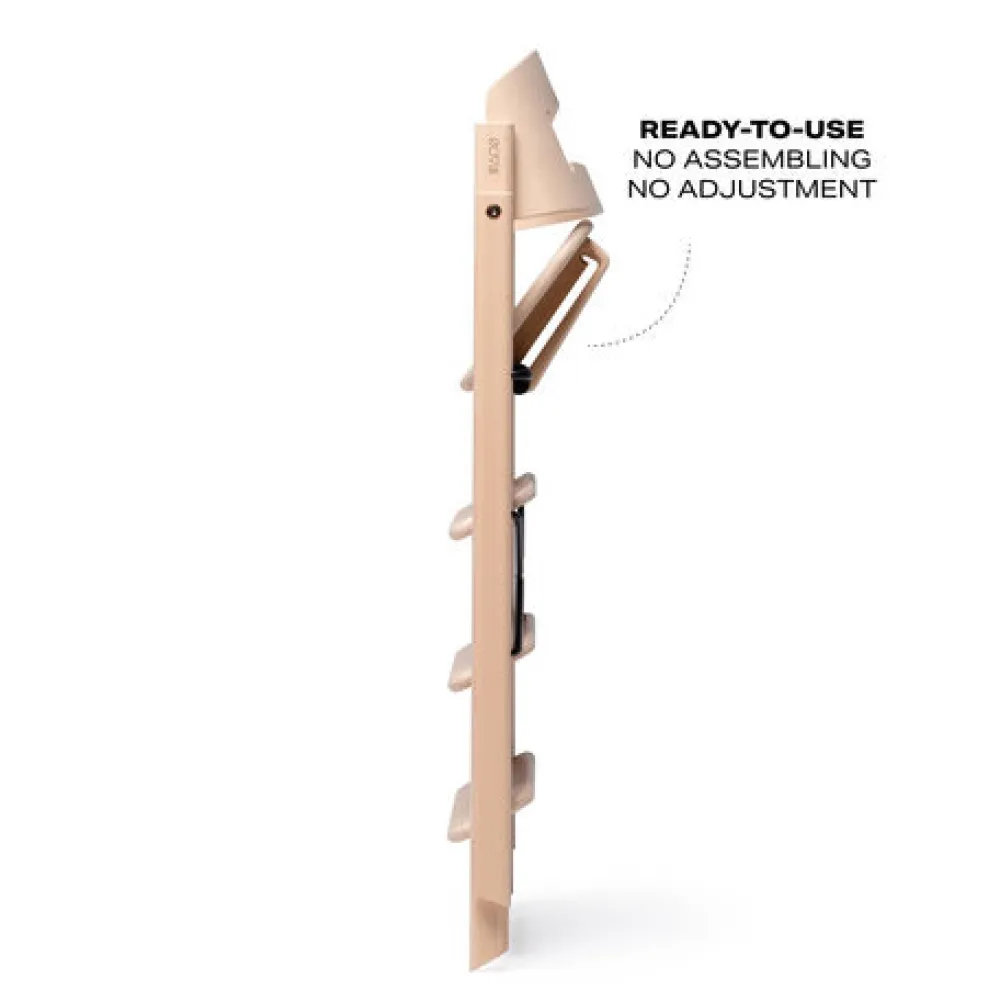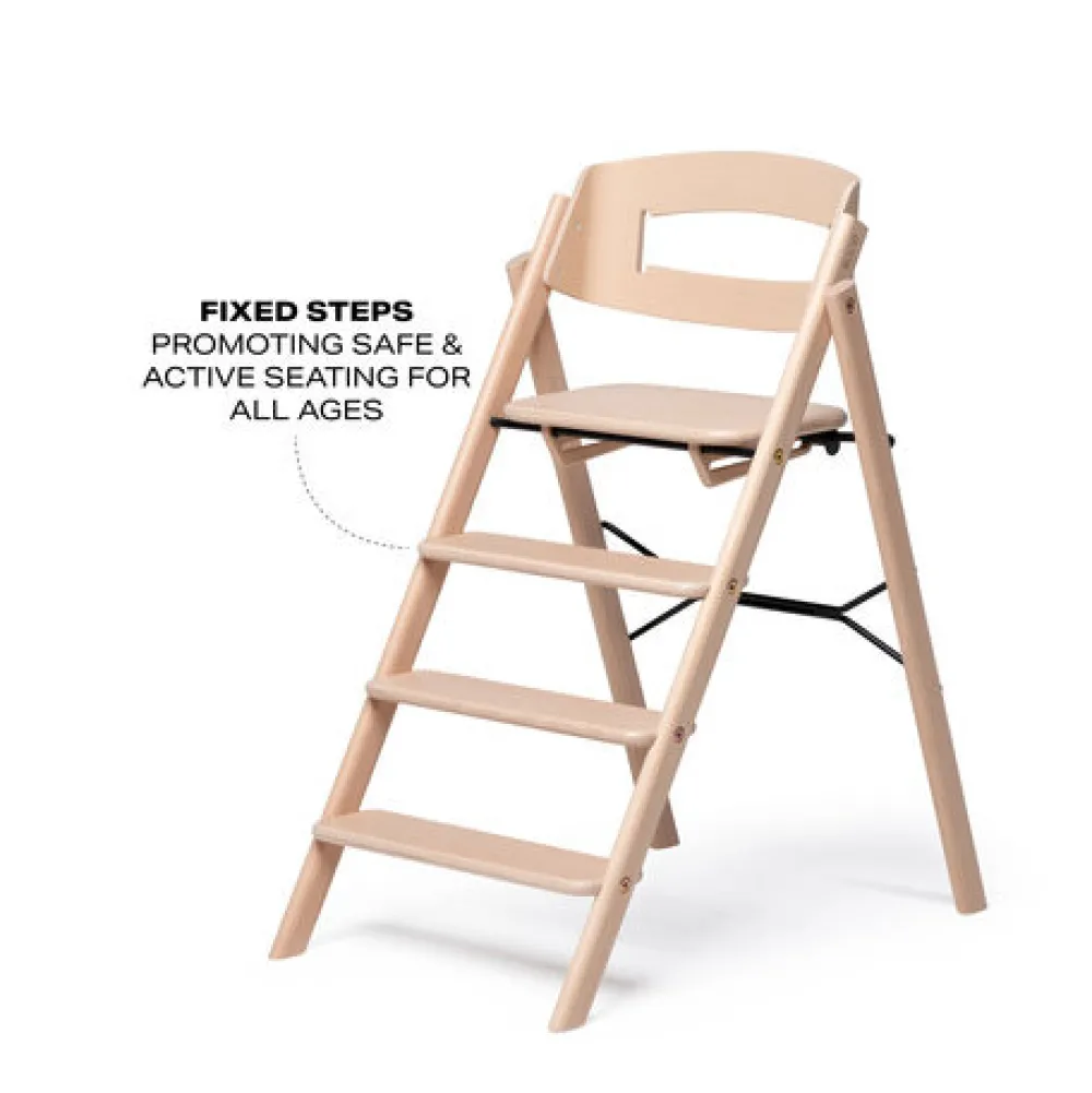 Kaos højstol: En smuk tilføjelse rundt om spiseborderet. Dens foldbare design gør den til en fantastisk pladsbesparende højstol, der også er perfekt lige til at tage med sig. De faste stigetrin er unikke og gør det nemt for barnet at klatre op og ned af KAOS Klapp højstolen på egen hånd. Barnet får en ergonomisk og aktiv siddeplads og hviler benene naturligt ved de forskellige trin, når de vokser. Bare fold stolen ud, klik sædet i låseposition, og den er klar til brug.