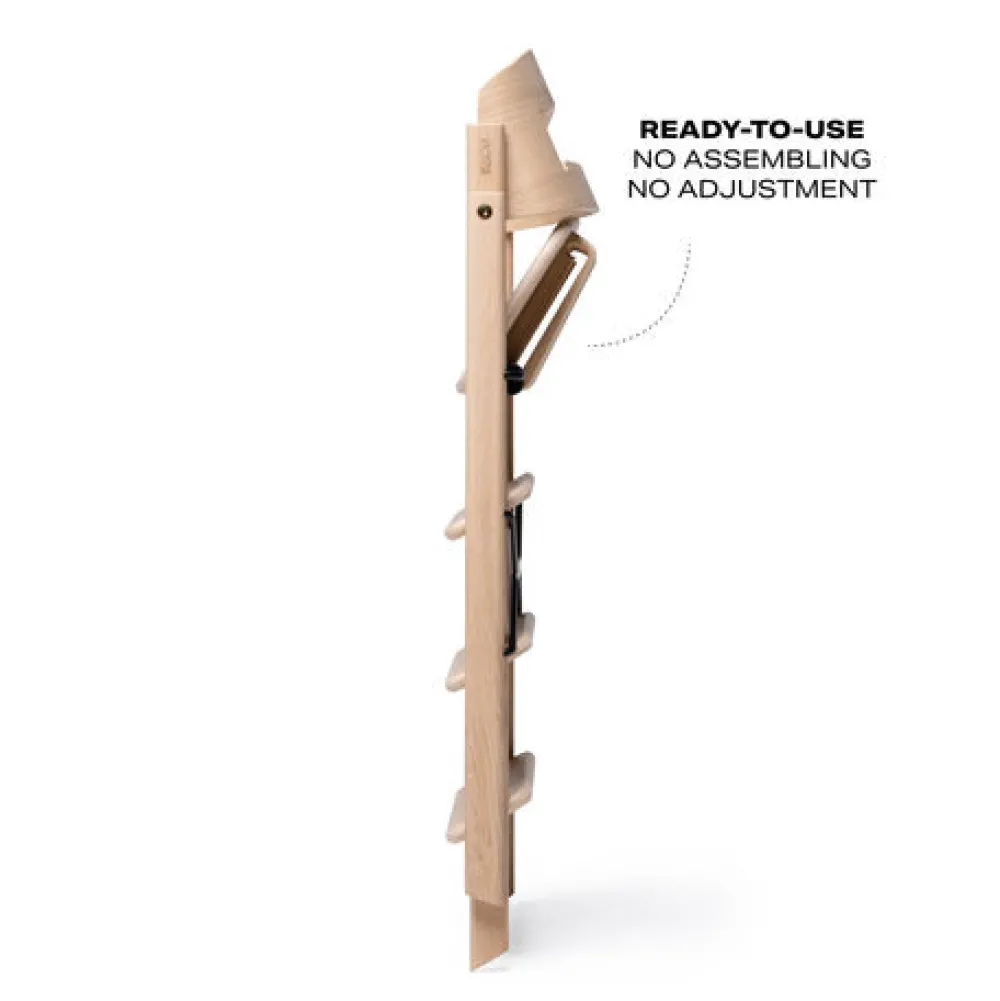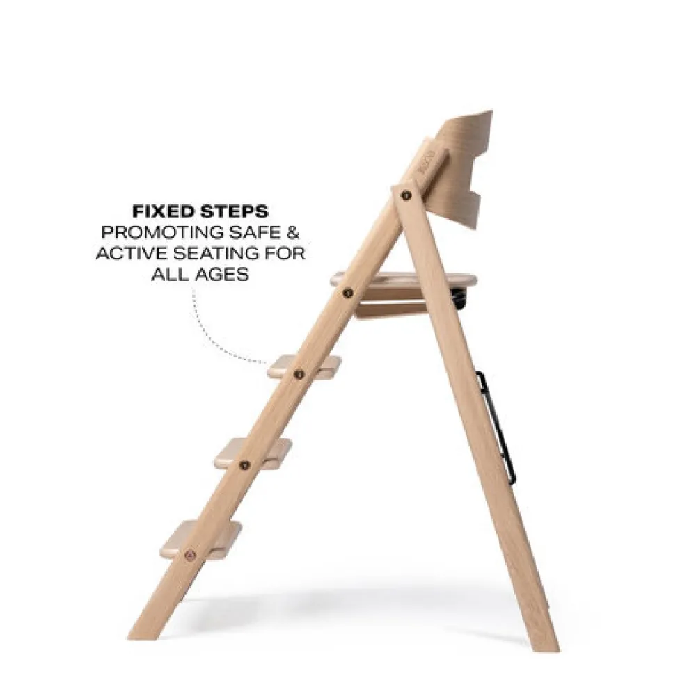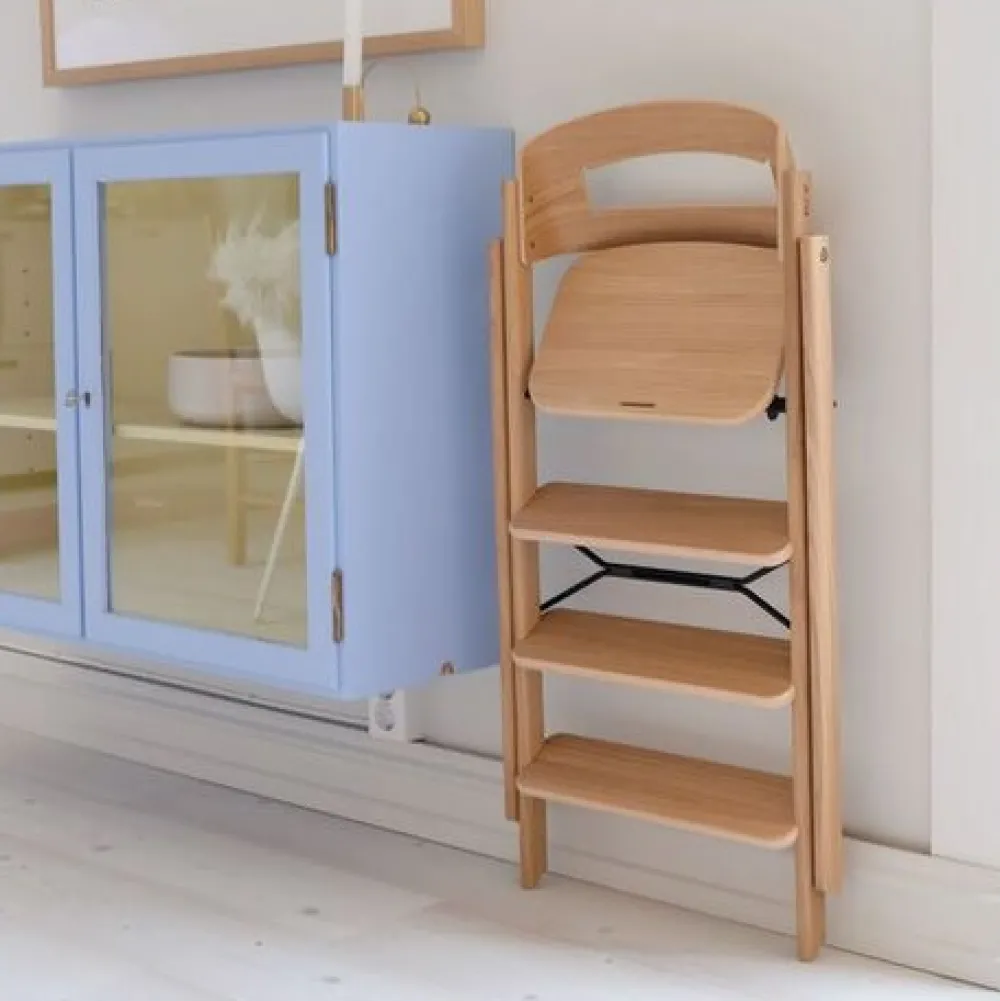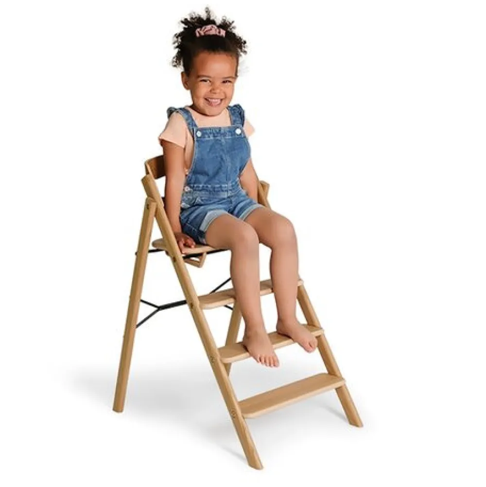 Kaos højstol: En smuk tilføjelse rundt om spiseborderet. Dens foldbare design gør den til en fantastisk pladsbesparende højstol, der også er perfekt lige til at tage med sig. De faste stigetrin er unikke og gør det nemt for barnet at klatre op og ned af KAOS Klapp højstolen på egen hånd. Barnet får en ergonomisk og aktiv siddeplads og hviler benene naturligt ved de forskellige trin, når de vokser. Bare fold stolen ud, klik sædet i låseposition, og den er klar til brug.