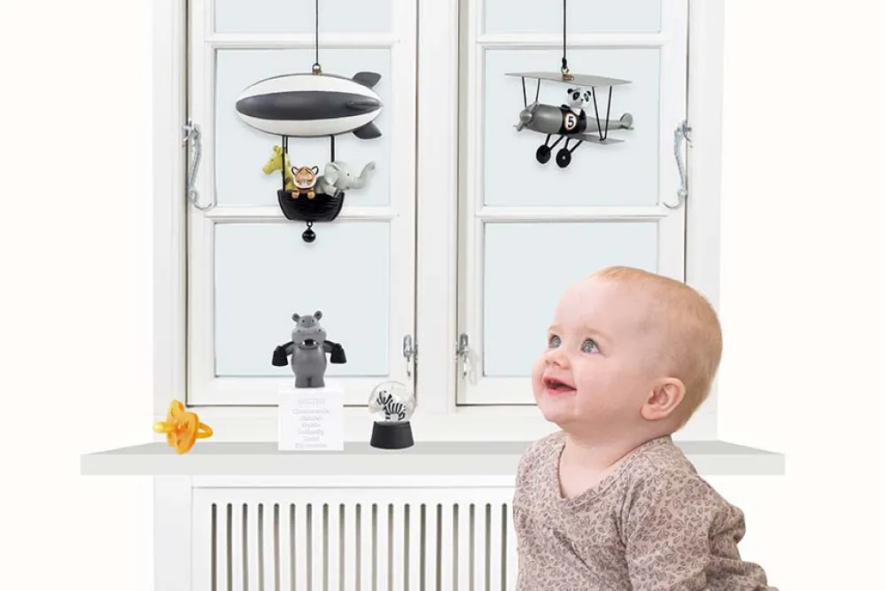 Super sød luftballon med Noah Ark tema. Luftballonen har en lille klokken hængende under sig. Kun til dekoration, er ikke legetøj. Skal holdes udenfor et barns rækkevidde.