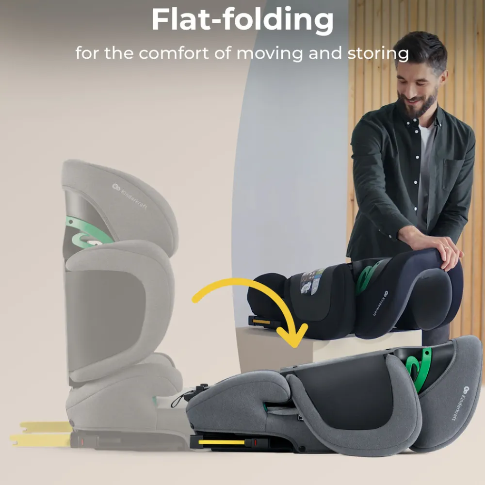 XPAND 2 i-Size kan foldes ud og klappes fladt sammen, så den fylder ikke meget plads.